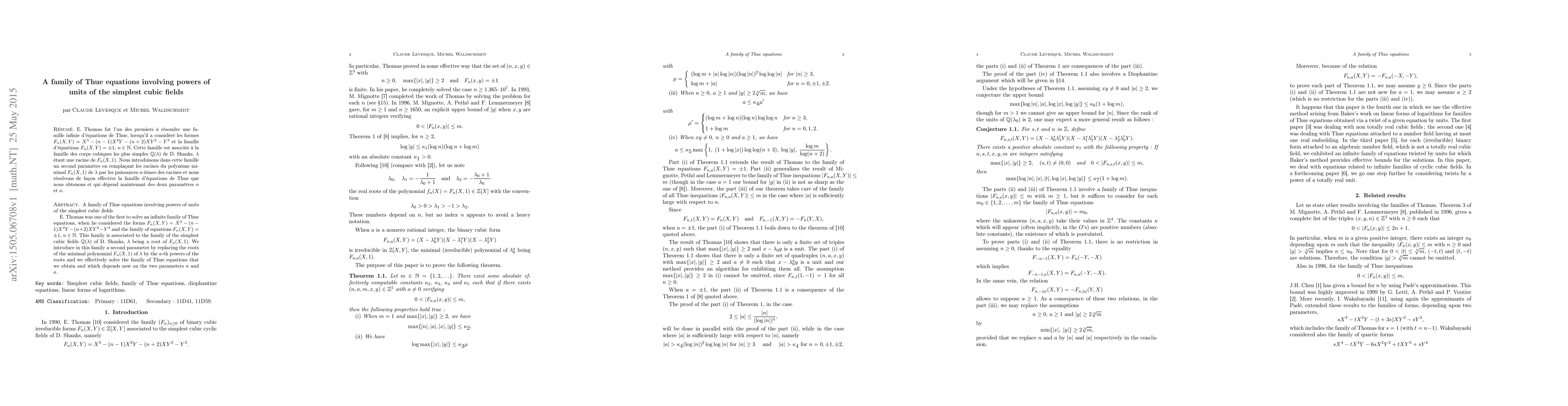 E. Thomas was one of the first to solve an infinite family of Thue equations, when he considered the forms $F_n(X, Y )= X^3 -(n-1)X^2Y -(n+2)XY^2 -Y^3$ and the family of equations $F_n(X, Y )=\pm 1$, $n\in {\mathbf N}$. This family is associated to the family of the simplest cubic fields ${\mathbf Q}(\lambda)$ of D. Shanks, $\lambda$ being a root of $F_n(X,1)$. We introduce in this family a second parameter by replacing the roots of the minimal polynomial $F_n(X, 1) $ of $\lambda$ by the $a$-th powers of the roots and we effectively solve the family of Thue equations that we obtain and which depends now on the two parameters $n$ and $a$.