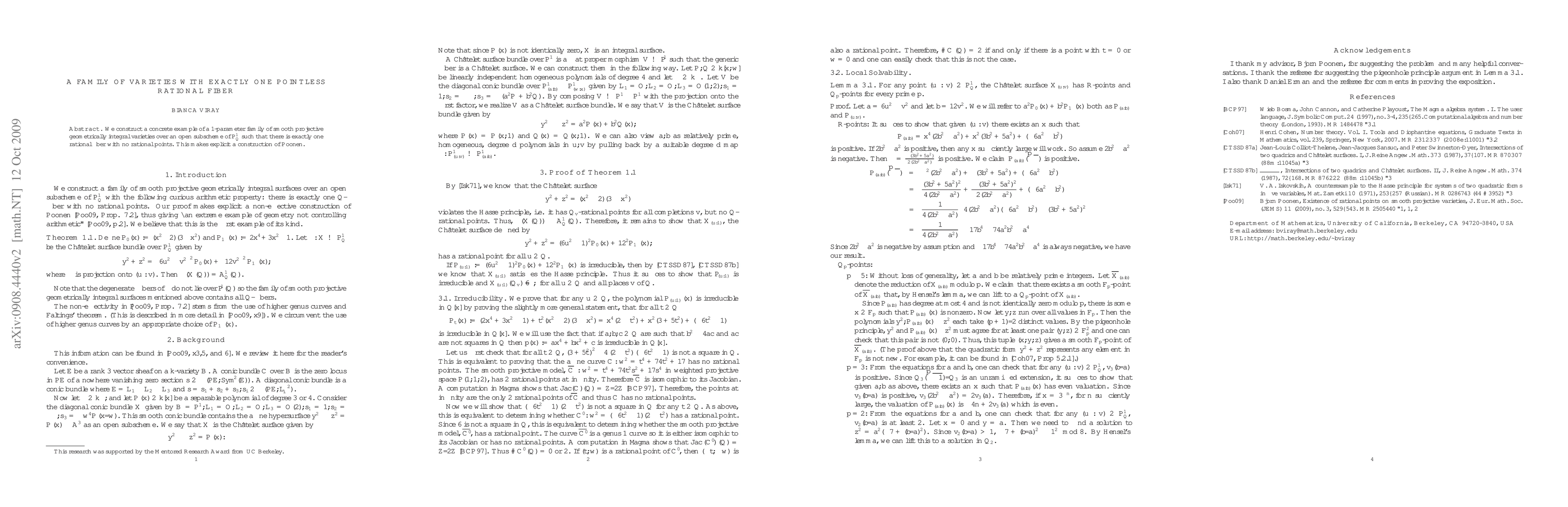 We construct a concrete example of a 1-parameter family of smooth projective geometrically integral varieties over an open subscheme of P^1_Q such that there is exactly one rational fiber with no rational points. This makes explicit a construction of Poonen.