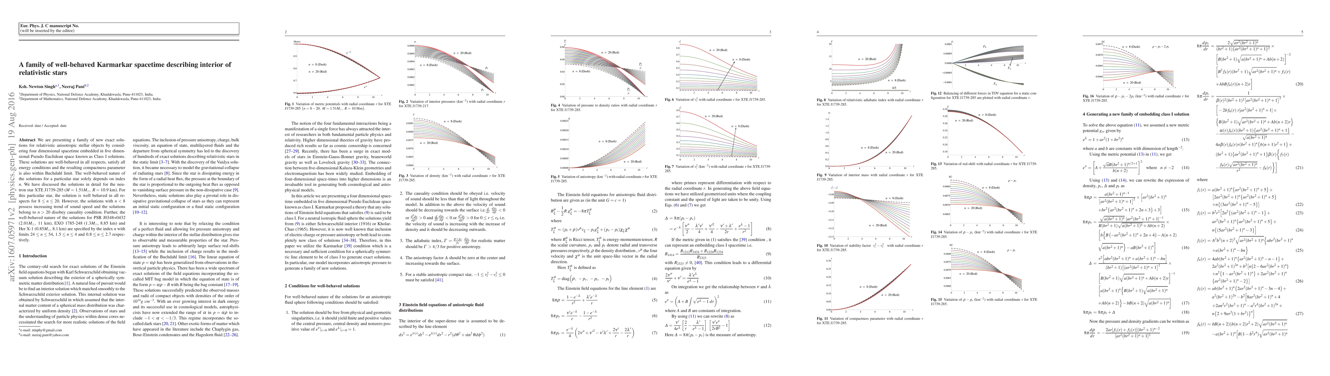 This paper introduces a new set of exact solutions for relativistic anisotropic stars, termed Class I solutions, which satisfy all energy conditions and remain within the Buchdahl limit. The well-behaved nature of these solutions for specific neutron stars depends on the index n, with particular ranges ensuring causality and physical viability for stars like XTE J1739-285, PSR J0348+0432, EXO 1785-248, and Her X-1.