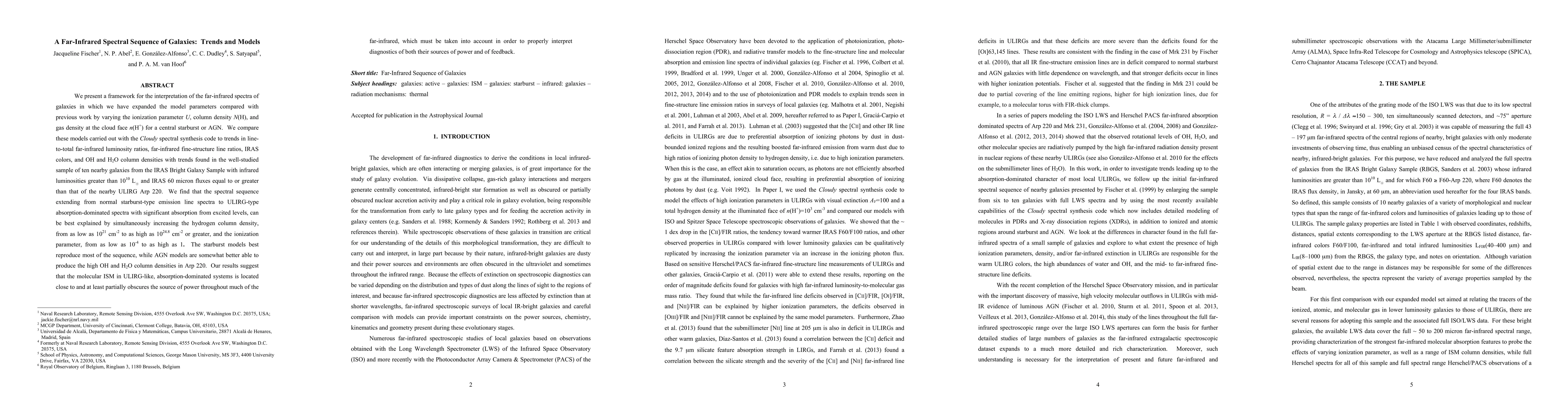 We present a framework for the interpretation of the far-infrared spectra of galaxies in which we have expanded the model parameters compared with previous work by varying the ionization parameter $U$, column density $N$(H), and gas density at the cloud face $n$(H$^{+}$) for a central starburst or AGN. We compare these models carried out with the $Cloudy$ spectral synthesis code to trends in line-to-total far-infrared luminosity ratios, far-infrared fine-structure line ratios, IRAS colors, and OH and H$_{2}$O column densities with trends found in the well-studied sample of ten nearby galaxies from the IRAS Bright Galaxy Sample with infrared luminosities greater than 10$^{10}$ L$_{\odot}$ and IRAS 60 micron fluxes equal to or greater than that of the nearby ULIRG Arp 220. We find that the spectral sequence extending from normal starburst-type emission line spectra to ULIRG-type absorption-dominated spectra with significant absorption from excited levels, can be best explained by simultaneously increasing the hydrogen column density, from as low as 10$^{21}$ cm$^{-2}$ to as high as 10$^{24.8}$ cm$^{-2}$ or greater, and the ionization parameter, from as low as 10$^{-4}$ to as high as 1. The starburst models best reproduce most of the sequence, while AGN models are somewhat better able to produce the high OH and H$_{2}$O column densities in Arp 220. Our results suggest that the molecular ISM in ULIRG-like, absorption-dominated systems is located close to and at least partially obscures the source of power throughout much of the far-infrared, which must be taken into account in order to properly interpret diagnostics of both their sources of power and of feedback.