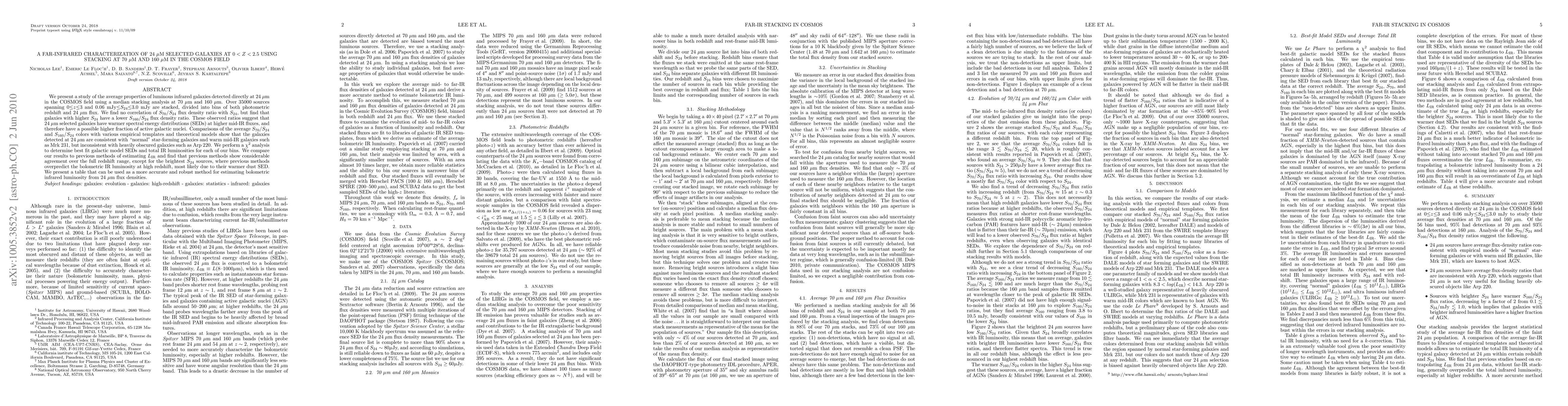 analysis at 70$\mu$m and 160 $\mu$m. Over 35000 sources spanning 0