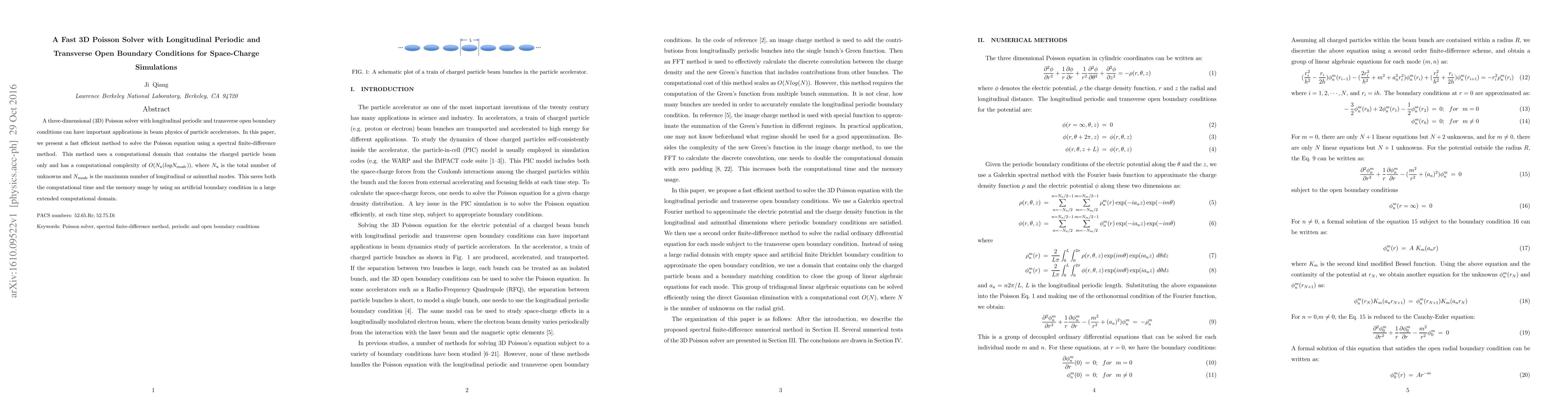 This paper presents a fast 3D Poisson solver for space-charge simulations in particle accelerators, employing spectral finite-difference methods with efficient boundary conditions to reduce computational time and memory usage. The method achieves a complexity of $O(N_u(logN_{mode}))$, optimizing performance for beam physics applications.