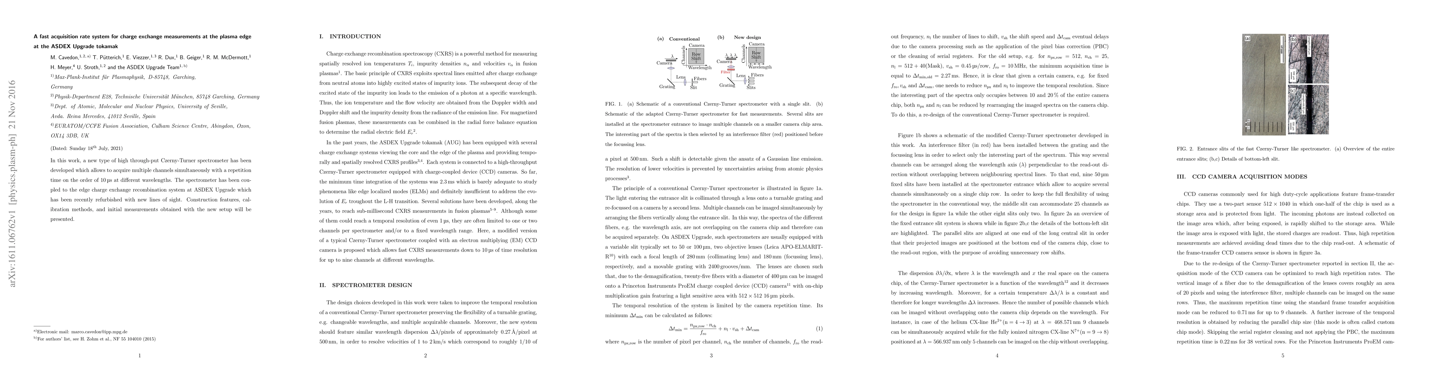 A new high-throughput Czerny-Turner spectrometer enables fast charge exchange measurements at the plasma edge of the ASDEX Upgrade tokamak with a 10μs repetition time, allowing for rapid data acquisition.