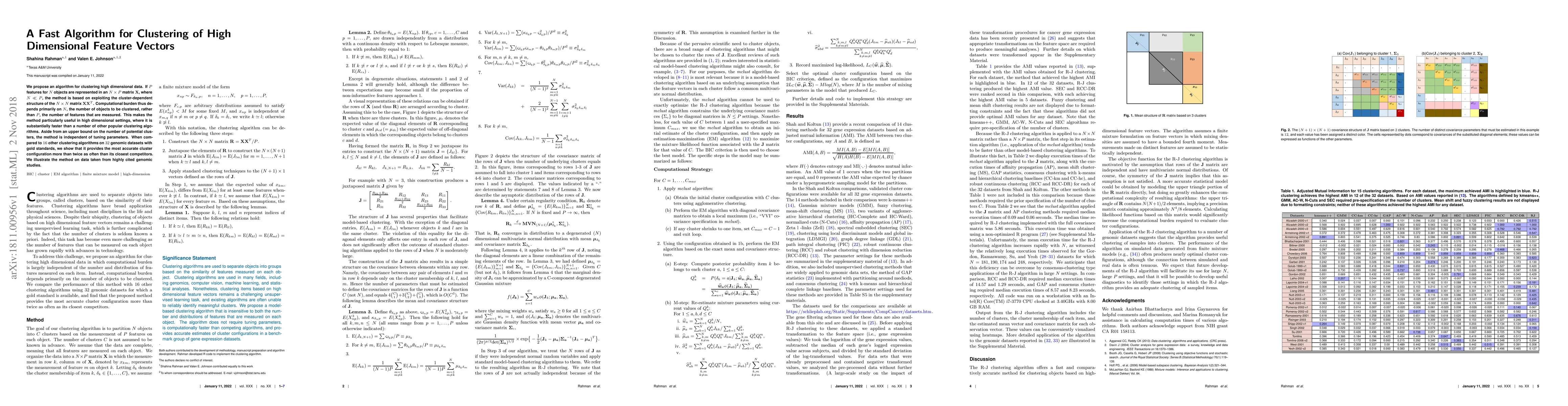 A fast algorithm for clustering high-dimensional feature vectors is proposed, which is faster than existing methods and achieves accurate results more often.