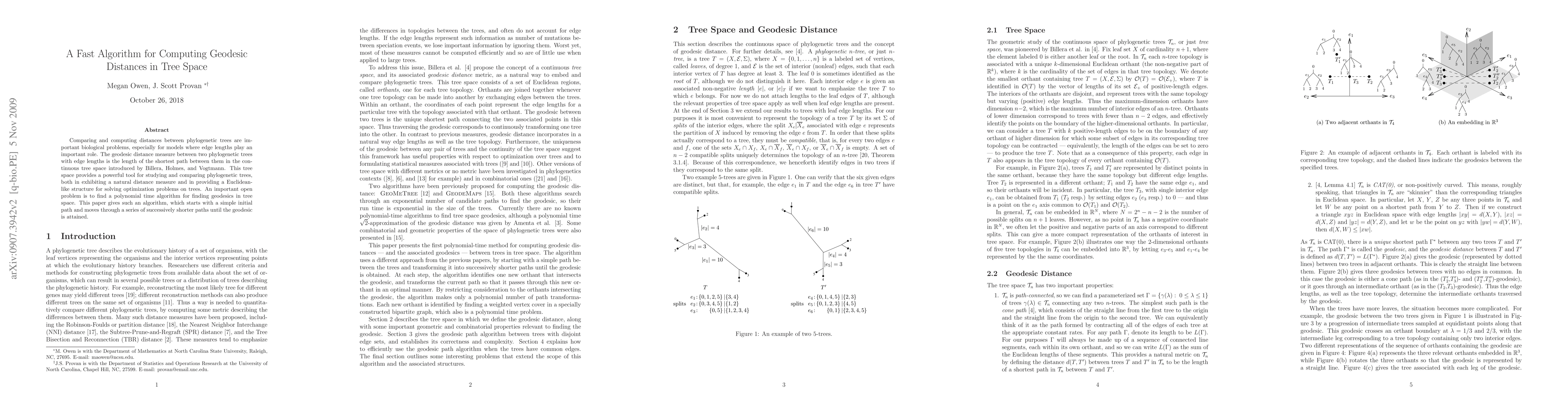 Comparing and computing distances between phylogenetic trees are important biological problems, especially for models where edge lengths play an important role. The geodesic distance measure between two phylogenetic trees with edge lengths is the length of the shortest path between them in the continuous tree space introduced by Billera, Holmes, and Vogtmann. This tree space provides a powerful tool for studying and comparing phylogenetic trees, both in exhibiting a natural distance measure and in providing a Euclidean-like structure for solving optimization problems on trees. An important open problem is to find a polynomial time algorithm for finding geodesics in tree space. This paper gives such an algorithm, which starts with a simple initial path and moves through a series of successively shorter paths until the geodesic is attained.