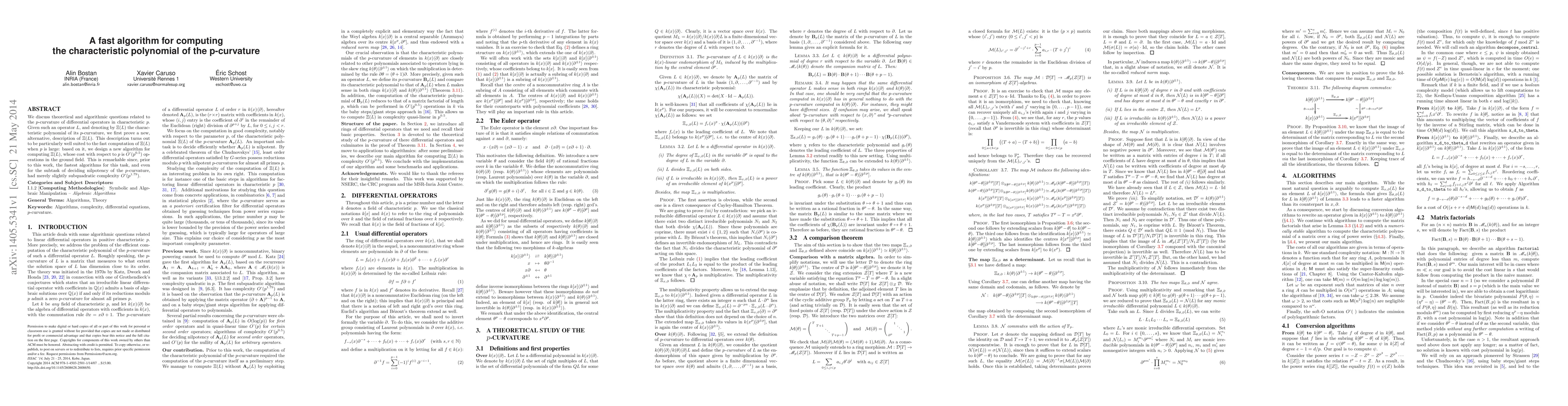 Researchers develop a fast algorithm to compute the characteristic polynomial of $p$-curvature for differential operators in characteristic $p$, achieving $oxed{ ext{O}(p^{0.5})}$ operations with large $p$.