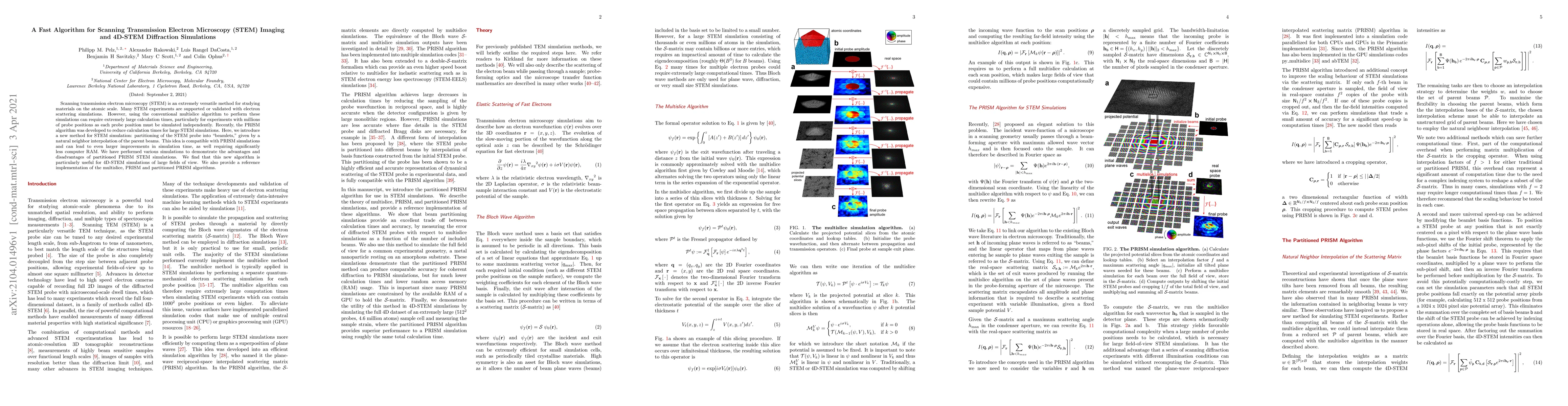 This paper introduces a new algorithm for fast Scanning Transmission Electron Microscopy (STEM) imaging and 4D-STEM diffraction simulations, which partitions the STEM probe into "beamlets" using natural neighbor interpolation. This method, compatible with PRISM simulations, significantly reduces computation time and RAM usage, especially beneficial for large-scale 4D-STEM simulations.