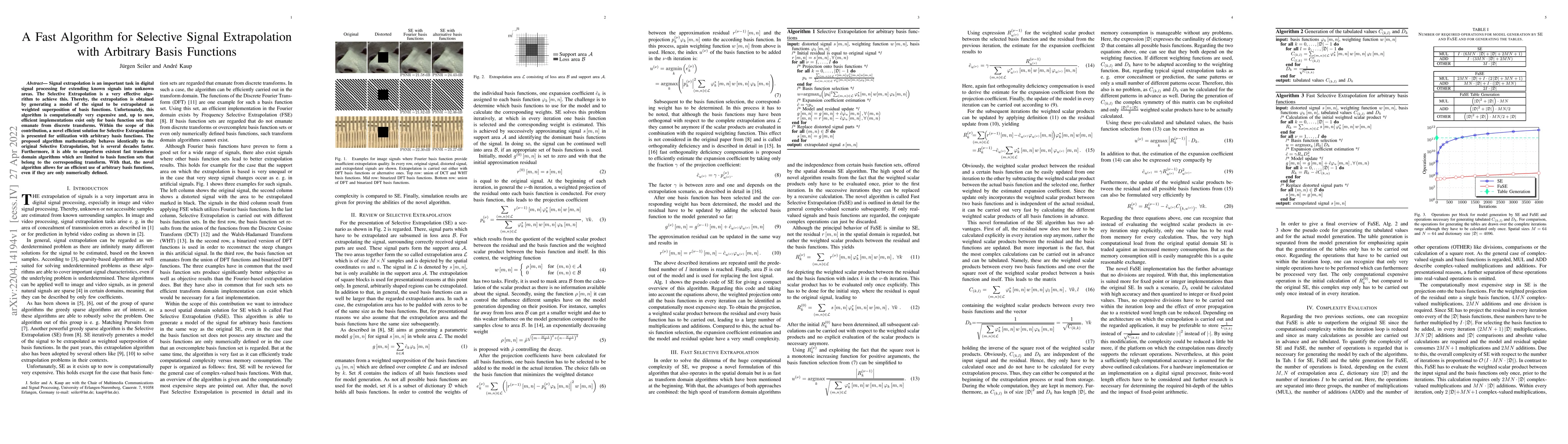 This paper introduces a significantly faster algorithm for Selective Signal Extrapolation using arbitrary basis functions, maintaining the mathematical accuracy of the original method while outperforming existing fast transform domain algorithms. The new approach enables efficient use of numerically defined basis functions.