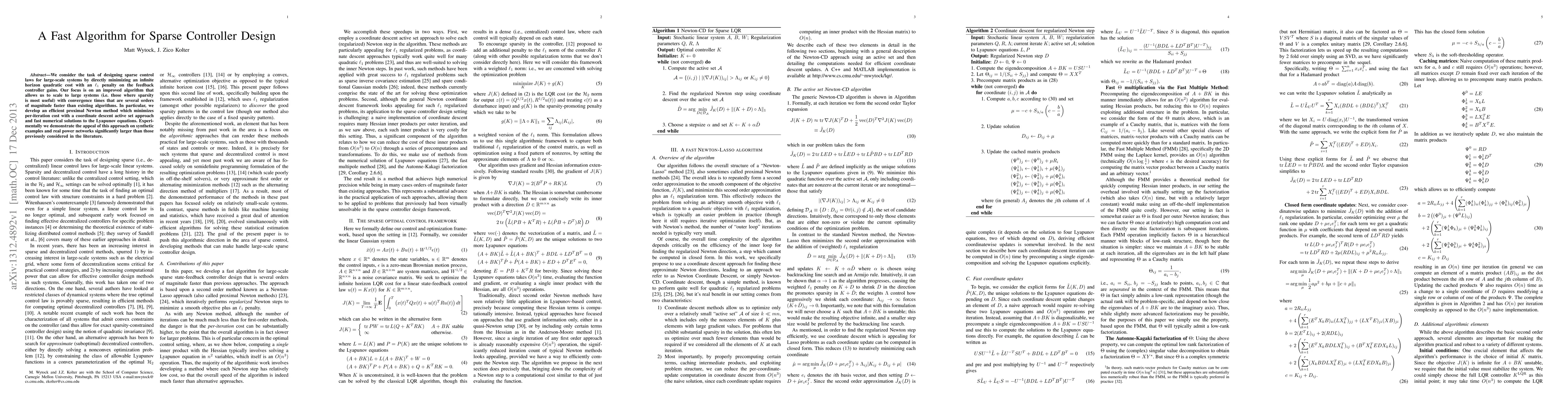 We consider the task of designing sparse control laws for large-scale systems by directly minimizing an infinite horizon quadratic cost with an $\ell_1$ penalty on the feedback controller gains. Our focus is on an improved algorithm that allows us to scale to large systems (i.e. those where sparsity is most useful) with convergence times that are several orders of magnitude faster than existing algorithms. In particular, we develop an efficient proximal Newton method which minimizes per-iteration cost with a coordinate descent active set approach and fast numerical solutions to the Lyapunov equations. Experimentally we demonstrate the appeal of this approach on synthetic examples and real power networks significantly larger than those previously considered in the literature.