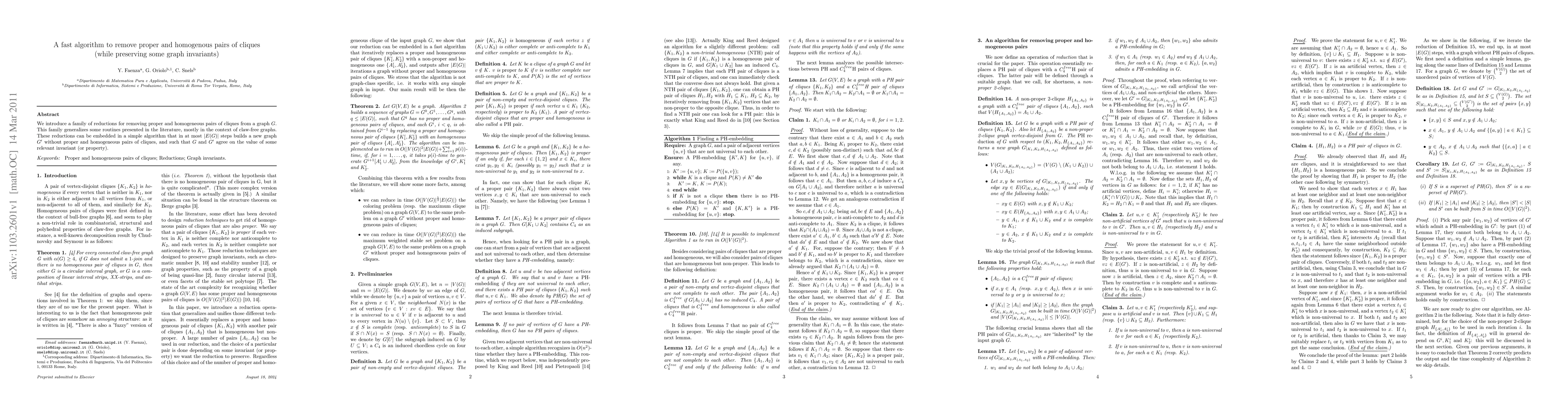 We introduce a family of reductions for removing proper and homogeneous pairs of cliques from a graph G. This family generalizes some routines presented in the literature, mostly in the context of claw-free graphs. These reductions can be embedded in a simple algorithm that in at most |E(G)| steps builds a new graph G' without proper and homogeneous pairs of cliques, and such that G and G' agree on the value of some relevant invariant (or property).
