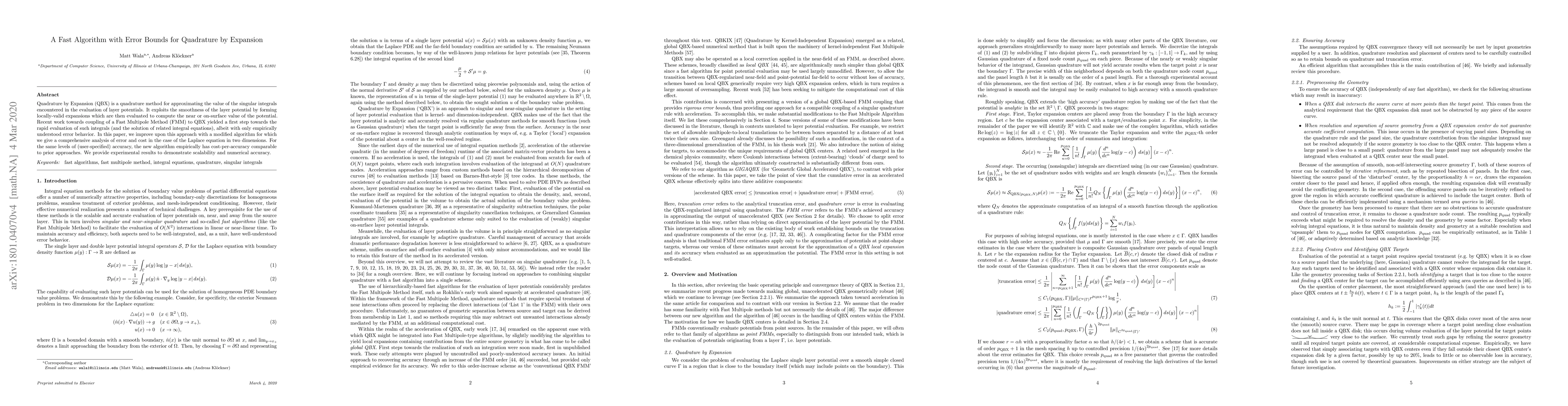 This paper presents a refined algorithm for the Quadrature by Expansion (QBX) method, integrating it with the Fast Multipole Method (FMM) for efficient evaluation of singular integrals in layer potentials. The new approach provides a thorough error analysis and demonstrates comparable cost-per-accuracy to prior methods, validated by experimental results.
