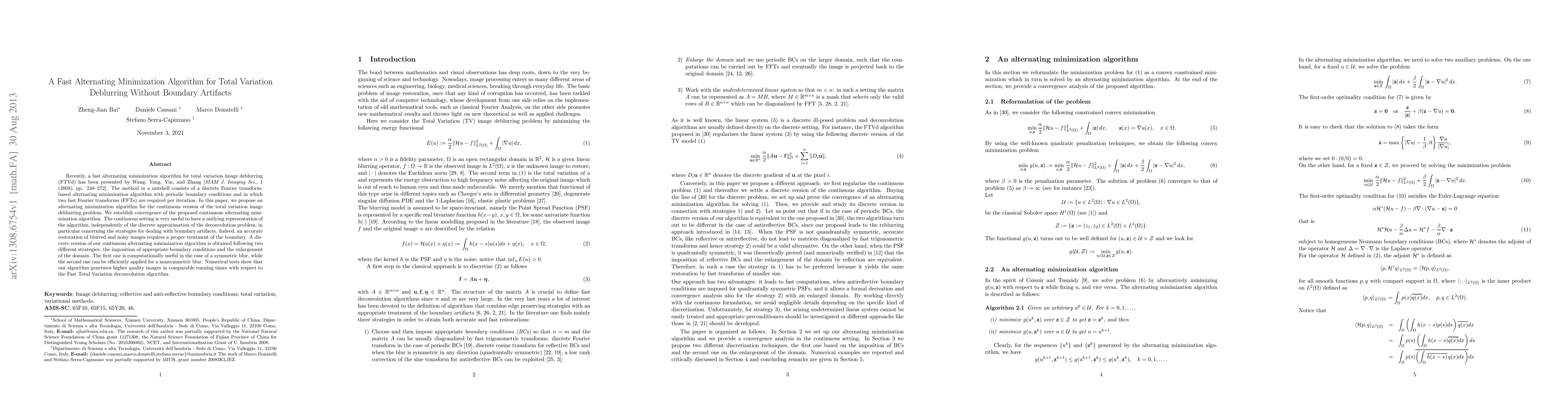 This paper proposes a continuous alternating minimization algorithm for total variation image deblurring, establishing its convergence and addressing boundary artifacts. It introduces two discrete versions with different boundary treatment strategies, demonstrating higher quality image restoration compared to existing methods.