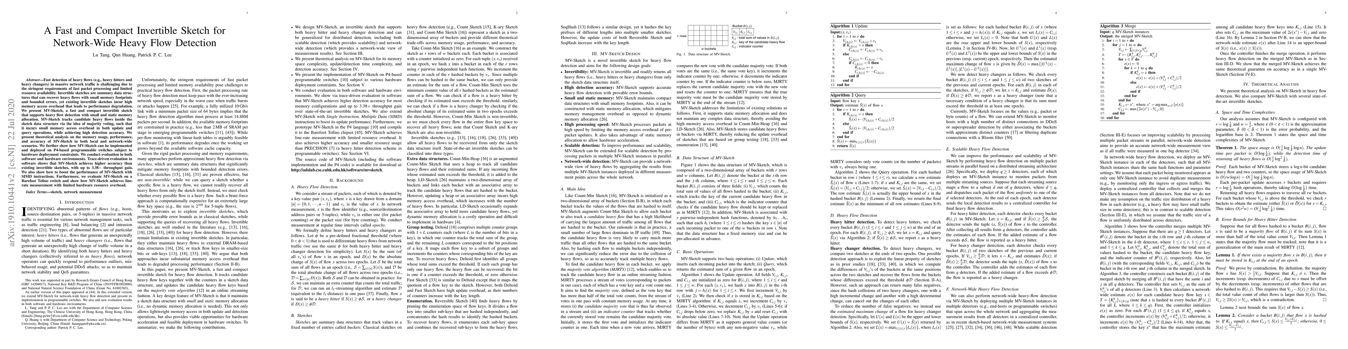 Researchers developed MV-Sketch, a fast and compact invertible sketch for detecting heavy flows in network traffic, achieving higher accuracy than existing methods with up to 3.38x throughput gain.