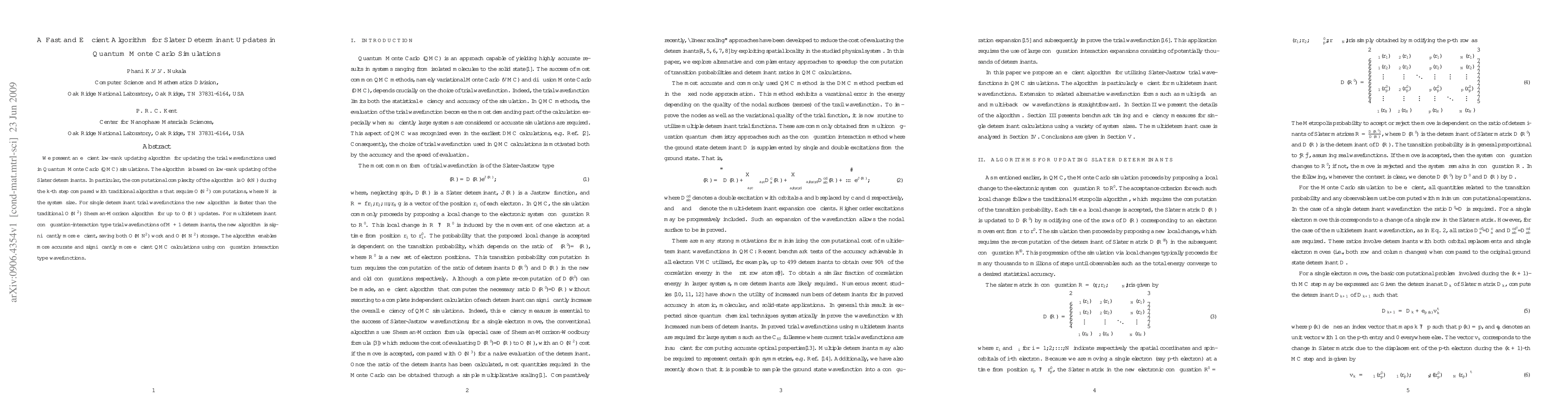 This paper introduces a fast low-rank updating algorithm for Slater determinants in Quantum Monte Carlo simulations, achieving O(kN) complexity compared to traditional O(N^2) methods. It significantly improves efficiency for both single and multideterminant wavefunctions, enabling more accurate and resource-saving QMC calculations.