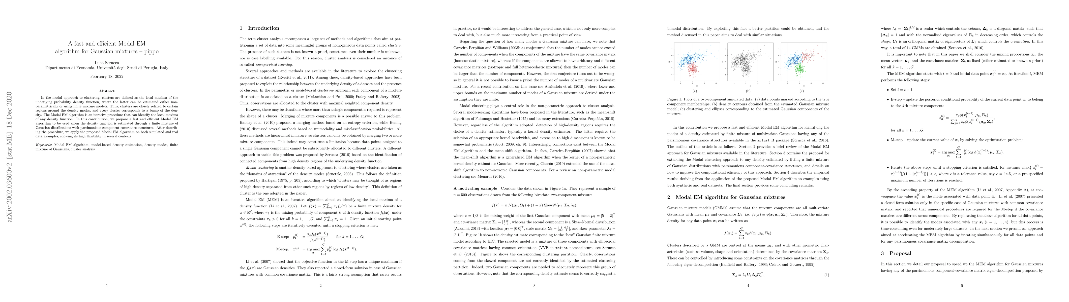 This paper proposes a fast and efficient Modal EM algorithm for identifying local maxima in Gaussian mixture models, which corresponds to clusters in the data. The algorithm is demonstrated through applications on both simulated and real datasets, showcasing its flexibility and effectiveness.
