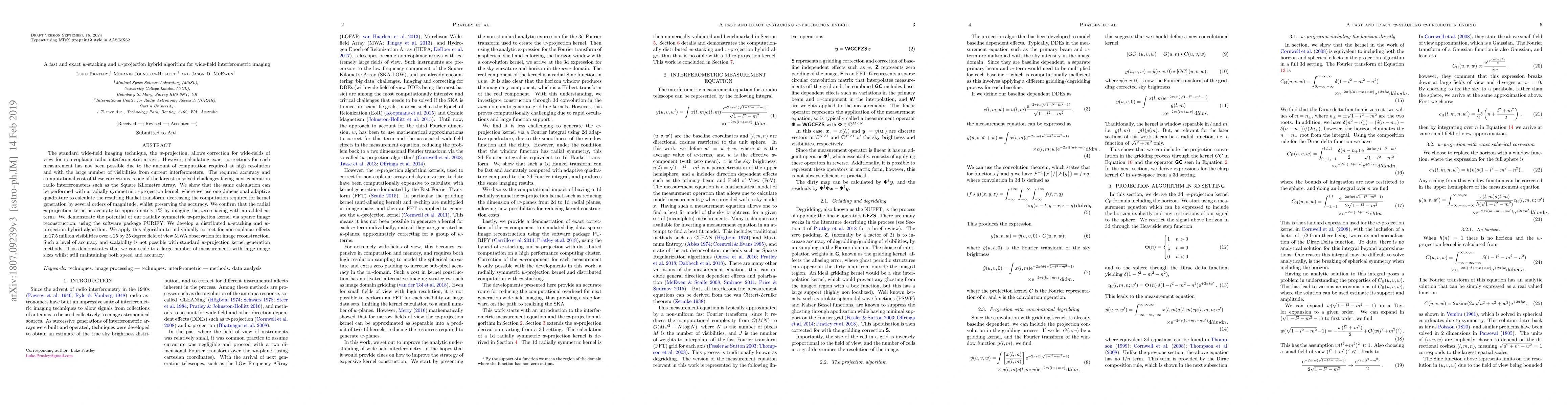 This paper presents a fast and exact hybrid algorithm combining $w$-stacking and $w$-projection for wide-field interferometric imaging, significantly reducing computational costs by using a radially symmetric $w$-projection kernel and adaptive quadrature. This approach enables accurate correction for non-coplanar effects in large datasets, demonstrating scalability and precision for next-generation radio interferometers.