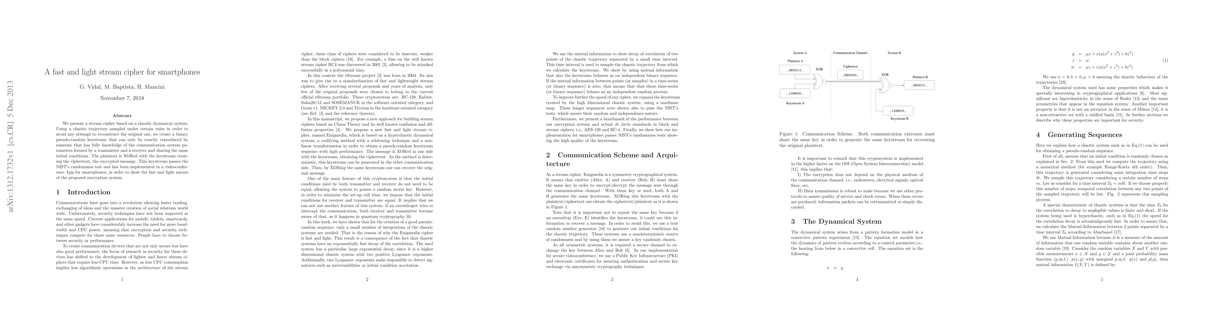This paper introduces a fast and lightweight stream cipher for smartphones based on a chaotic dynamical system, generating a secure binary pseudo-random keystream that passes NIST randomness tests and is implemented in a videoconference app to demonstrate its efficiency.
