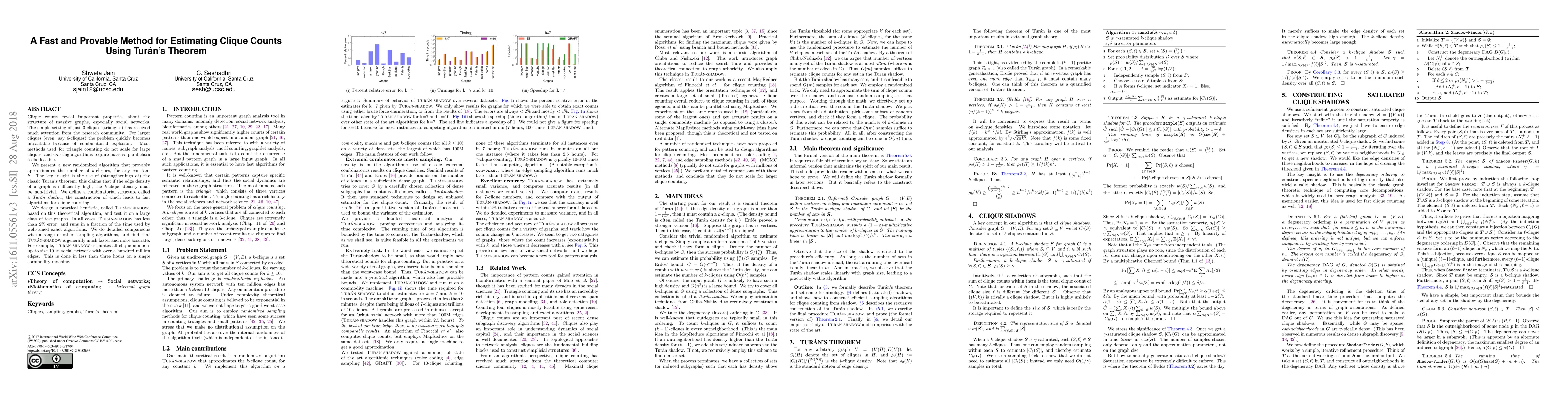 This paper introduces a novel randomized algorithm that efficiently estimates the number of k-cliques in large graphs using a strengthened Tur\'an's theorem. The proposed TUR\'AN-SHADOW heuristic achieves less than 2% error in a fraction of the time required by exact algorithms, demonstrating significant speed and accuracy improvements for estimating large clique counts in massive social networks.