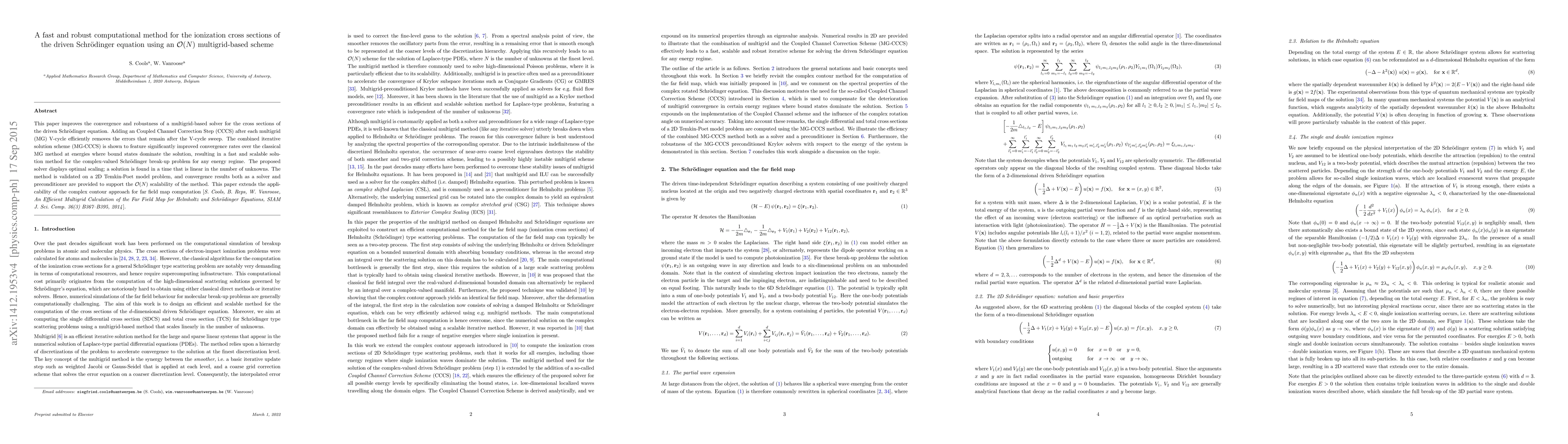 This paper improves the convergence and robustness of a multigrid-based solver for the cross sections of the driven Schroedinger equation. Adding an Coupled Channel Correction Step (CCCS) after each multigrid (MG) V-cycle efficiently removes the errors that remain after the V-cycle sweep. The combined iterative solution scheme (MG-CCCS) is shown to feature significantly improved convergence rates over the classical MG method at energies where bound states dominate the solution, resulting in a fast and scalable solution method for the complex-valued Schroedinger break-up problem for any energy regime. The proposed solver displays optimal scaling; a solution is found in a time that is linear in the number of unknowns. The method is validated on a 2D Temkin-Poet model problem, and convergence results both as a solver and preconditioner are provided to support the O(N) scalability of the method. This paper extends the applicability of the complex contour approach for far field map computation [S. Cools, B. Reps, W. Vanroose, An Efficient Multigrid Calculation of the Far Field Map for Helmholtz and Schroedinger Equations, SIAM J. Sci. Comp. 36(3) B367--B395, 2014].