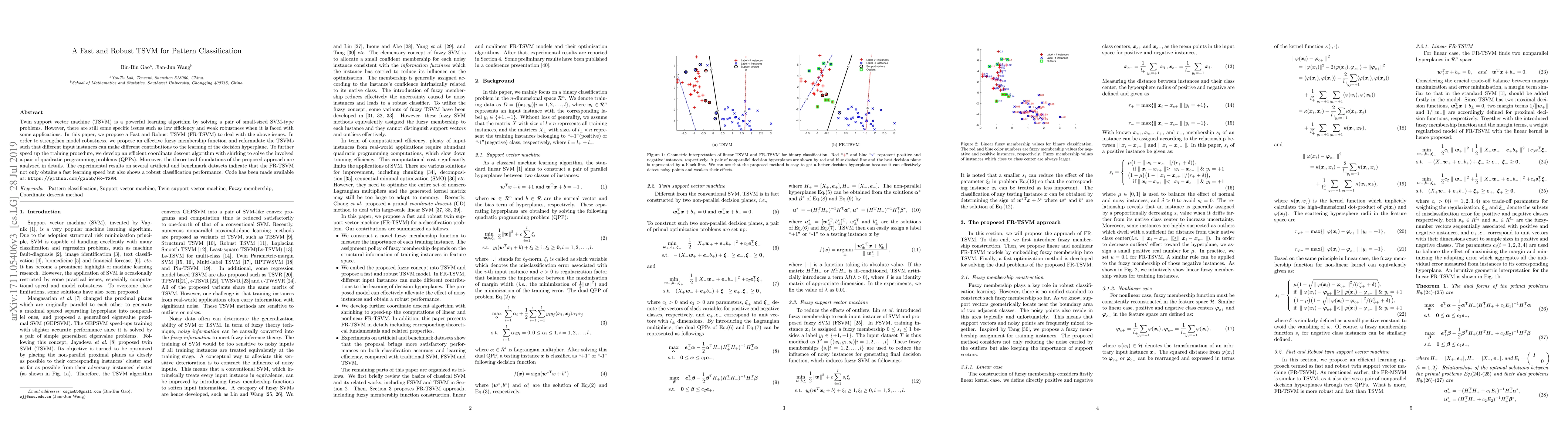 A new machine learning algorithm called Fast and Robust TSVM is proposed to improve on existing Twin Support Vector Machine (TSVM) models, achieving faster training times and robust classification performance.