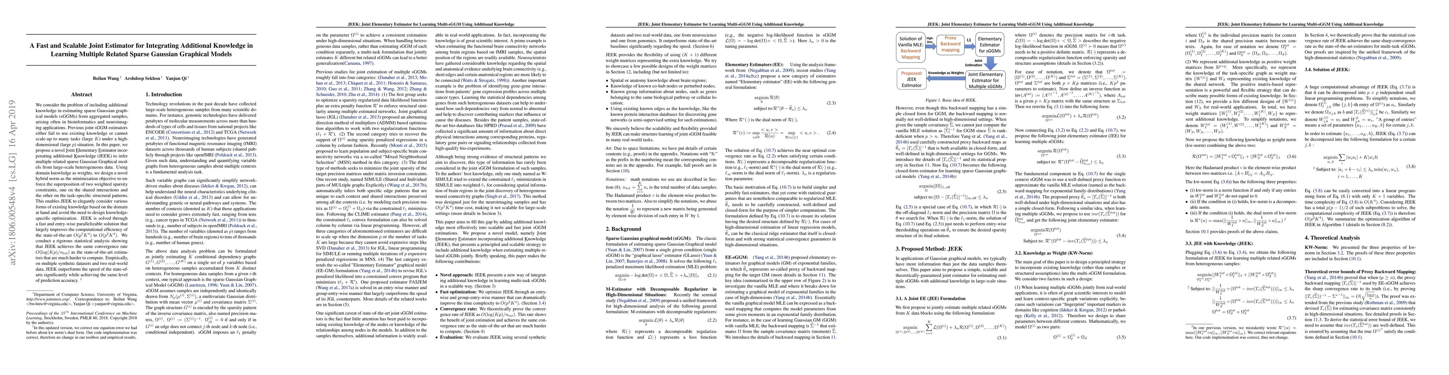 A new method called Joint Elementary Estimator (JEEK) improves estimating sparse Gaussian graphical models from large data sets, allowing for efficient incorporation of additional knowledge and achieving the same accuracy as existing methods.