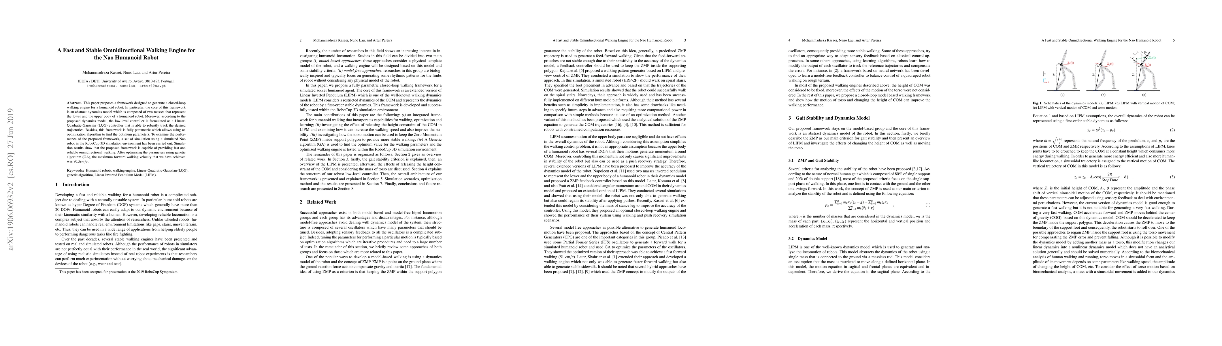 This paper presents a fast and stable omnidirectional walking engine for the Nao humanoid robot, utilizing a closed-loop dynamics model and a Linear-Quadratic-Gaussian controller. Simulation results demonstrate reliable performance, achieving a maximum forward walking speed of 80.5 cm/s.