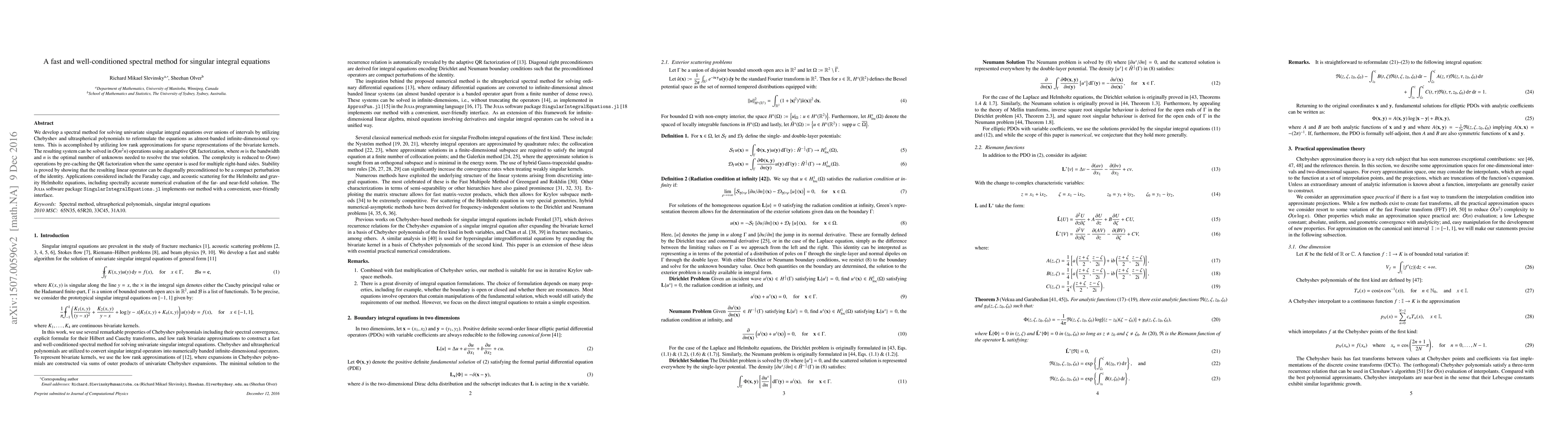 We develop a spectral method for solving univariate singular integral equations over unions of intervals by utilizing Chebyshev and ultraspherical polynomials to reformulate the equations as almost-banded infinite-dimensional systems. This is accomplished by utilizing low rank approximations for sparse representations of the bivariate kernels. The resulting system can be solved in ${\cal O}(m^2n)$ operations using an adaptive QR factorization, where $m$ is the bandwidth and $n$ is the optimal number of unknowns needed to resolve the true solution. The complexity is reduced to ${\cal O}(m n)$ operations by pre-caching the QR factorization when the same operator is used for multiple right-hand sides. Stability is proved by showing that the resulting linear operator can be diagonally preconditioned to be a compact perturbation of the identity. Applications considered include the Faraday cage, and acoustic scattering for the Helmholtz and gravity Helmholtz equations, including spectrally accurate numerical evaluation of the far- and near-field solution. The Julia software package SingularIntegralEquations.jl implements our method with a convenient, user-friendly interface.