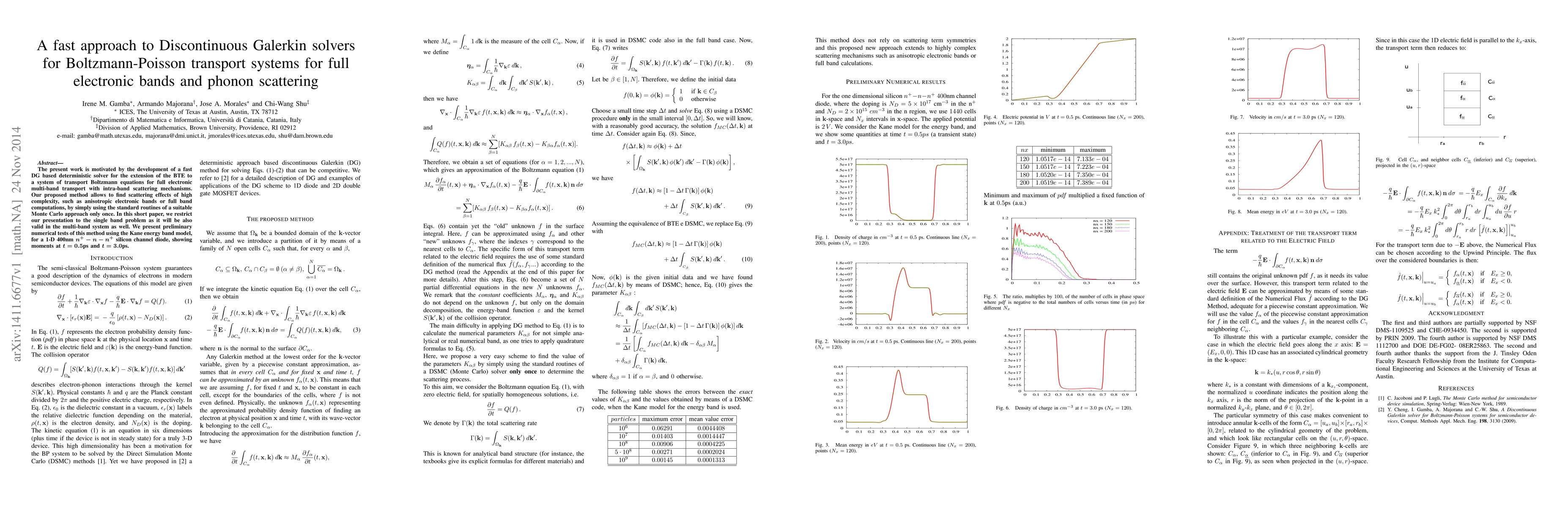 This paper proposes a fast Discontinuous Galerkin (DG) solver for Boltzmann-Poisson transport systems, extending the Boltzmann Transport Equation to multi-band electronic transport with phonon scattering. Preliminary numerical tests demonstrate the method's effectiveness in simulating a 1-D silicon channel diode.