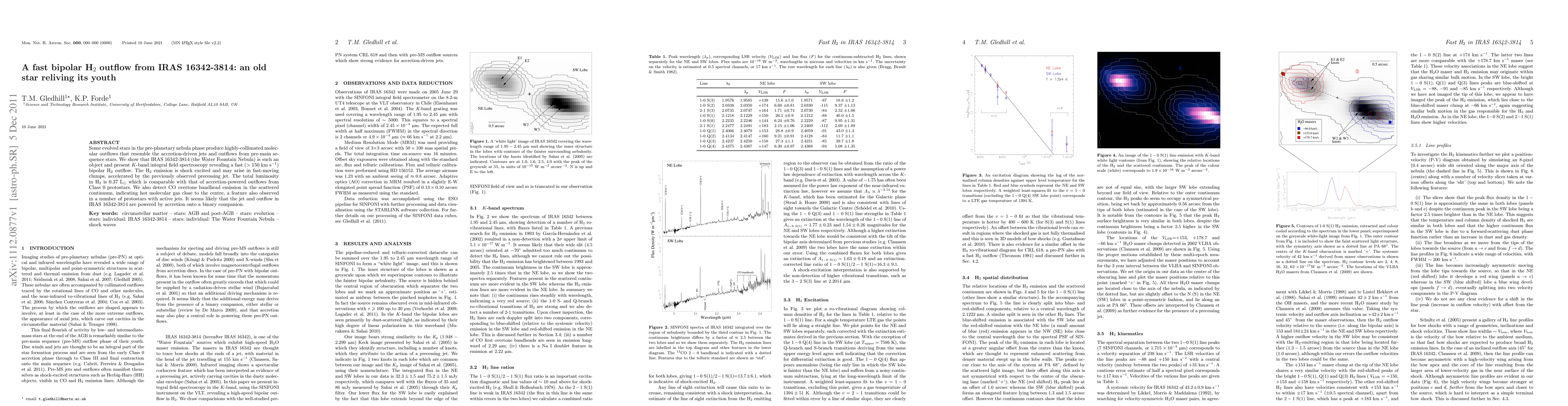 Some evolved stars in the pre-planetary nebula phase produce highly-collimated molecular outflows that resemble the accretion-driven jets and outflows from pre-main sequence stars. We show that IRAS 16342-3814 (the Water Fountain Nebula) is such an object and present K-band integral field spectroscopy revealing a fast (> 150 km/s) bipolar H2 outflow. The H2 emission is shock excited and may arise in fast-moving clumps, accelerated by the previously observed precessing jet. The total luminosity in H2 is 0.37 L$_{\odot}$ which is comparable with that of accretion-powered outflows from Class 0 protostars. We also detect CO overtone bandhead emission in the scattered continuum, indicating hot molecular gas close to the centre, a feature also observed in a number of protostars with active jets. It seems likely that the jet and outflow in IRAS 16342-3814 are powered by accretion onto a binary companion.