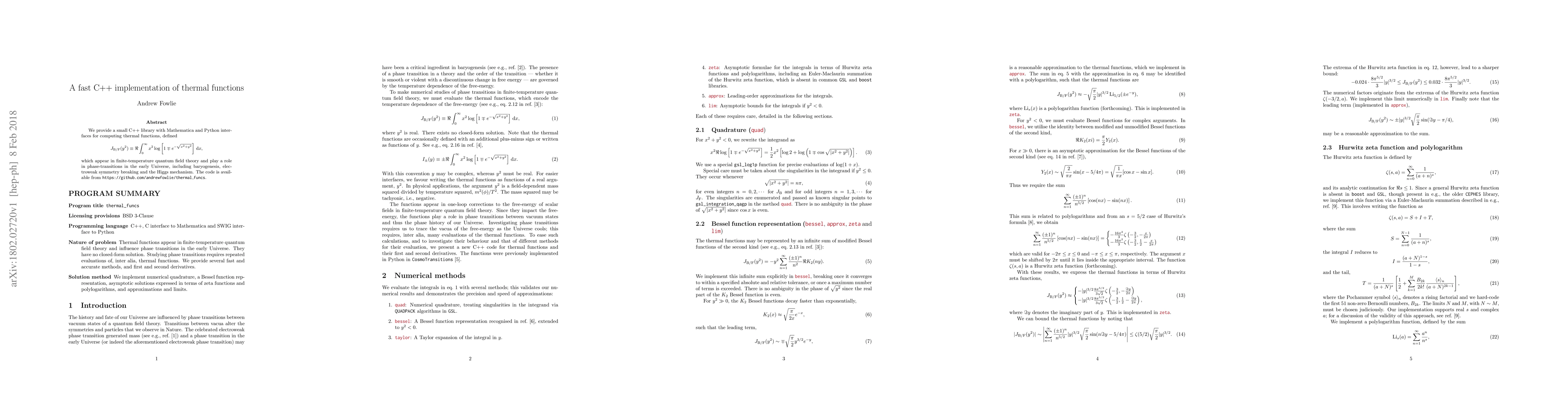 We provide a small C++ library with Mathematica and Python interfaces for computing thermal functions, defined $$ J_\text{B/F}(y^2) \equiv \Re \int_0^\infty x^2 \log\left[1 \mp e^{-\sqrt{x^2 + y^2}} \right] \,\text{d}x, $$ which appear in finite-temperature quantum field theory and play a role in phase-transitions in the early Universe, including baryogenesis, electroweak symmetry breaking and the Higgs mechanism.