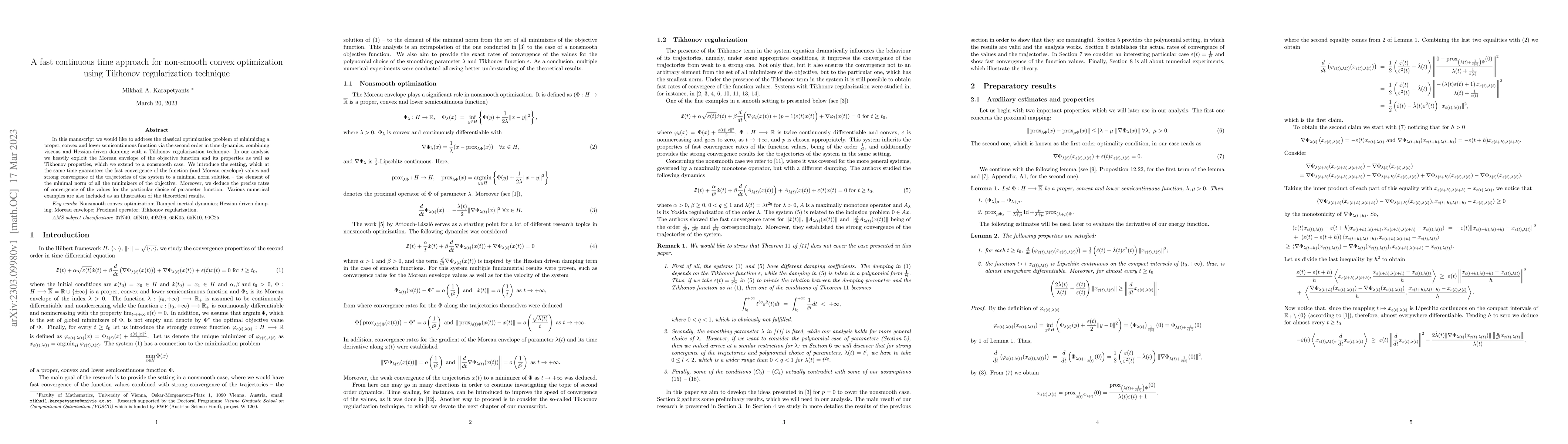 This paper proposes a fast continuous time method for non-smooth convex optimization using Tikhonov regularization, combining second-order dynamics with viscous and Hessian-driven damping. It guarantees fast convergence of function values and strong convergence to a minimal norm solution, with detailed convergence rates and numerical examples provided.