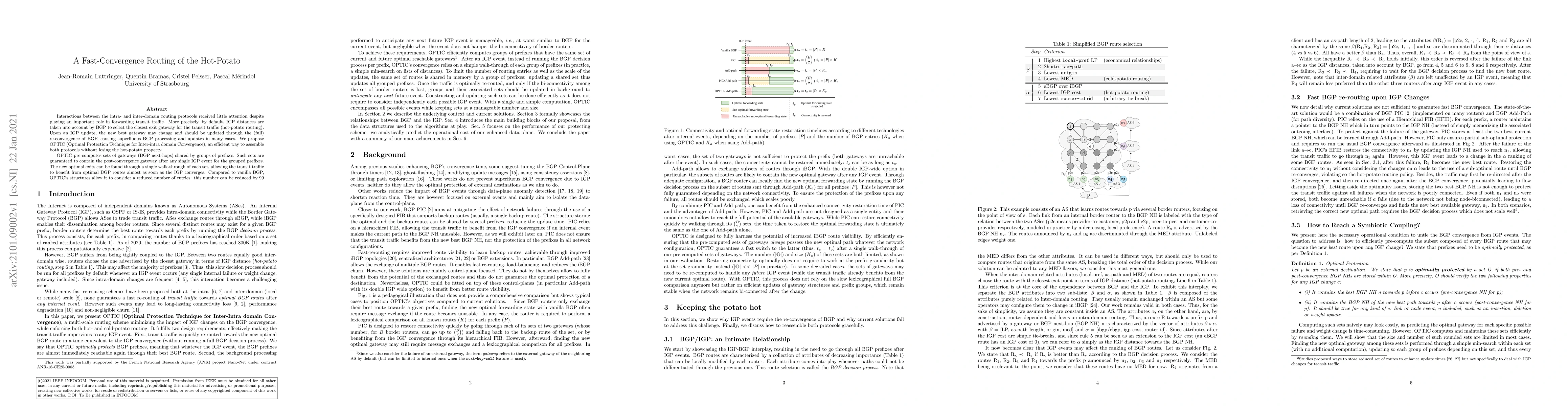 Interactions between the intra- and inter-domain routing protocols received little attention despite playing an important role in forwarding transit traffic. More precisely, by default, IGP distances are taken into account by BGP to select the closest exit gateway for the transit traffic (hot-potato routing). Upon an IGP update, the new best gateway may change and should be updated through the (full) re-convergence of BGP, causing superfluous BGP processing and updates in many cases. We propose OPTIC (Optimal Protection Technique for Inter-intra domain Convergence), an efficient way to assemble both protocols without losing the hot-potato property. OPTIC pre-computes sets of gateways (BGP next-hops) shared by groups of prefixes. Such sets are guaranteed to contain the post-convergence gateway after any single IGP event for the grouped prefixes. The new optimal exits can be found through a single walk-through of each set, allowing the transit traffic to benefit from optimal BGP routes almost as soon as the IGP converges. Compared to vanilla BGP, OPTIC's structures allow it to consider a reduced number of entries: this number can be reduced by 99\% for stub networks. The update of OPTIC's structures, which is not required as long as border routers remain at least bi-connected, scales linearly in time with its number of groups.