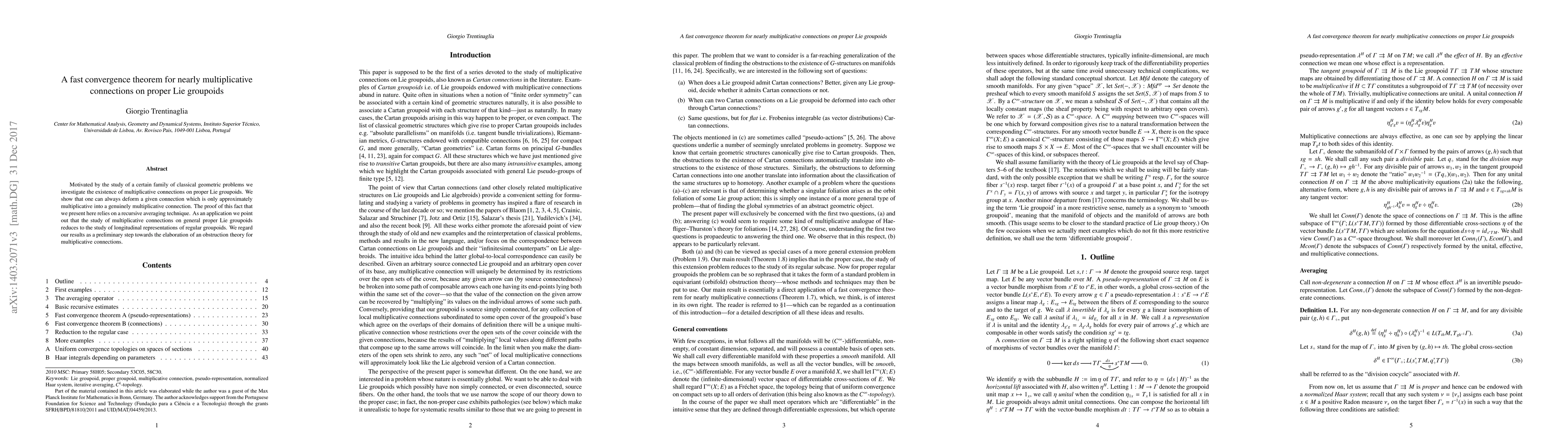 Motivated by the study of a certain family of classical geometric problems we investigate the existence of multiplicative connections on proper Lie groupoids. We show that one can always deform a given connection which is only approximately multiplicative into a genuinely multiplicative connection. The proof of this fact that we present here relies on a recursive averaging technique. As an application we point out that the study of multiplicative connections on general proper Lie groupoids reduces to the study of longitudinal representations of regular groupoids. We regard our results as a preliminary step towards the elaboration of an obstruction theory for multiplicative connections.