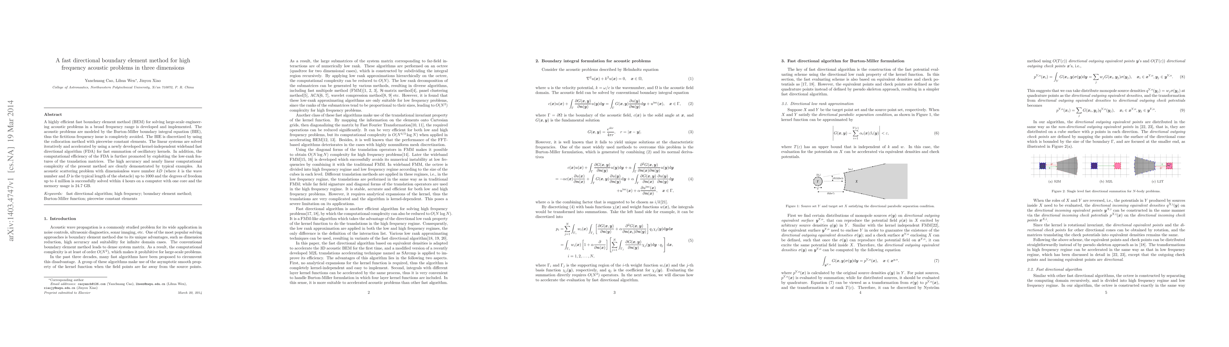The fast directional algorithm was adapted to accelerate acoustic problem computations with Burton-Miller formulation.