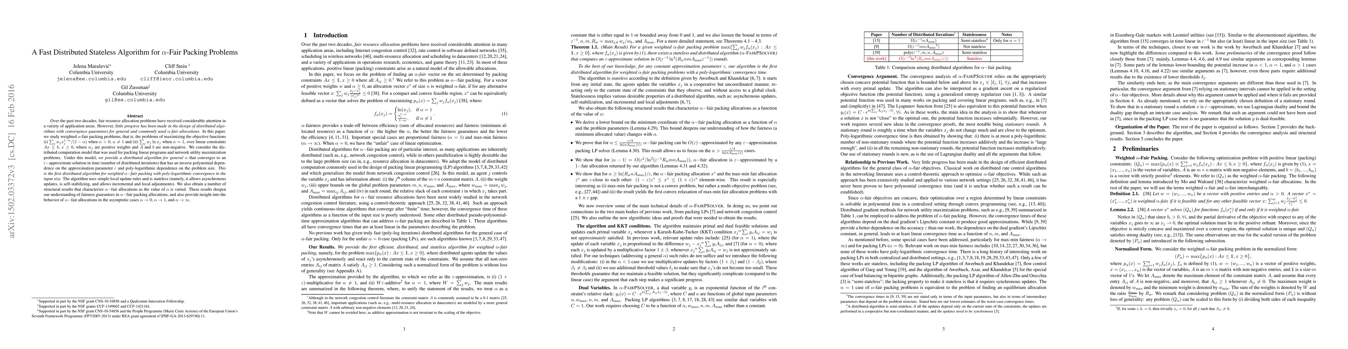 Researchers developed a fast distributed algorithm for solving weighted $eta$-fair packing problems with poly-logarithmic convergence, providing the first such algorithm for general $eta$. The algorithm ensures $eta$-$ ext{approximate}$ solutions in time with inverse polynomial dependence on approximation parameter and poly-logarithmic dependence on problem size.