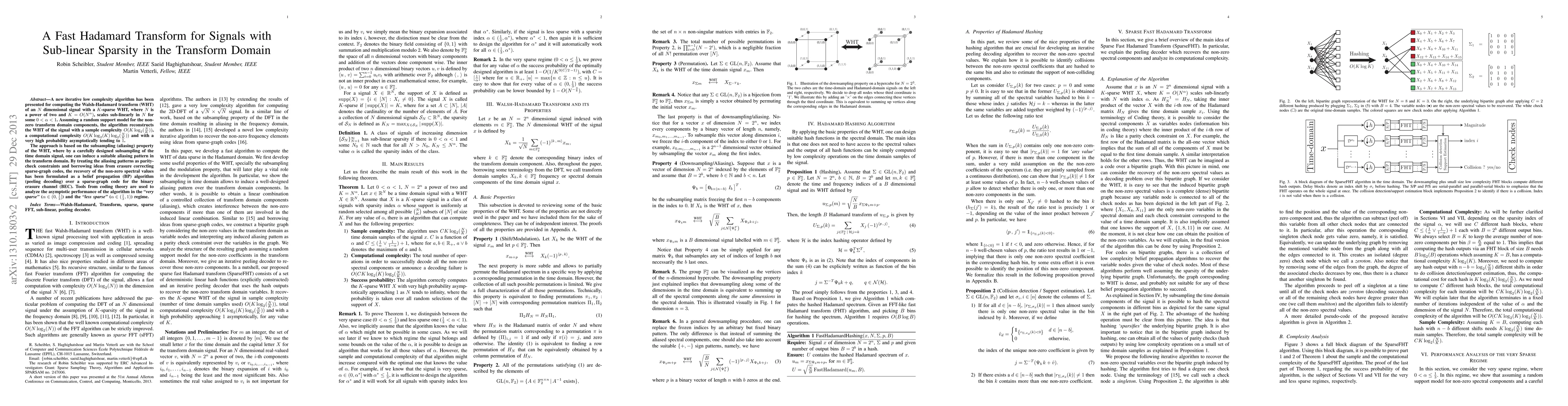 A new iterative low complexity algorithm has been presented for computing the Walsh-Hadamard transform (WHT) of an $N$ dimensional signal with a $K$-sparse WHT, where $N$ is a power of two and $K = O(N^\alpha)$, scales sub-linearly in $N$ for some $0 < \alpha < 1$. Assuming a random support model for the non-zero transform domain components, the algorithm reconstructs the WHT of the signal with a sample complexity $O(K \log_2(\frac{N}{K}))$, a computational complexity $O(K\log_2(K)\log_2(\frac{N}{K}))$ and with a very high probability asymptotically tending to 1. The approach is based on the subsampling (aliasing) property of the WHT, where by a carefully designed subsampling of the time domain signal, one can induce a suitable aliasing pattern in the transform domain. By treating the aliasing patterns as parity-check constraints and borrowing ideas from erasure correcting sparse-graph codes, the recovery of the non-zero spectral values has been formulated as a belief propagation (BP) algorithm (peeling decoding) over a sparse-graph code for the binary erasure channel (BEC). Tools from coding theory are used to analyze the asymptotic performance of the algorithm in the very sparse ($\alpha\in(0,\frac{1}{3}]$) and the less sparse ($\alpha\in(\frac{1}{3},1)$) regime.