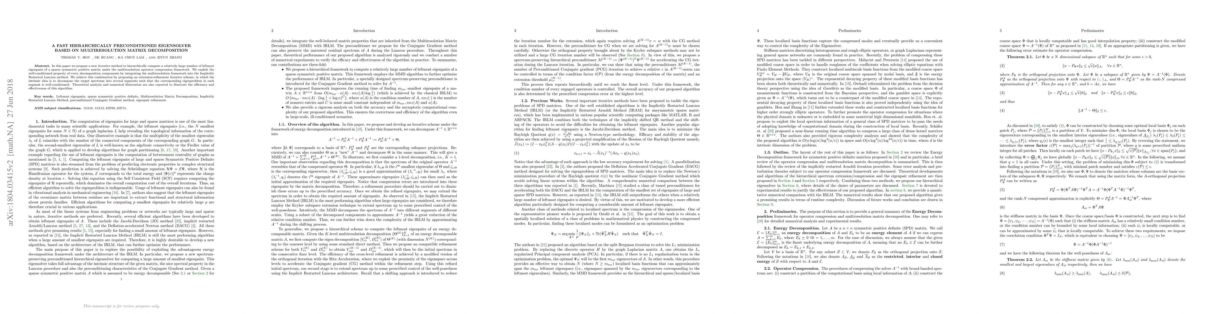 This paper proposes a new method for efficiently computing multiple leftmost eigenpairs of sparse symmetric positive matrices using multiresolution matrix decomposition and the Implicitly restarted Lanczos method.