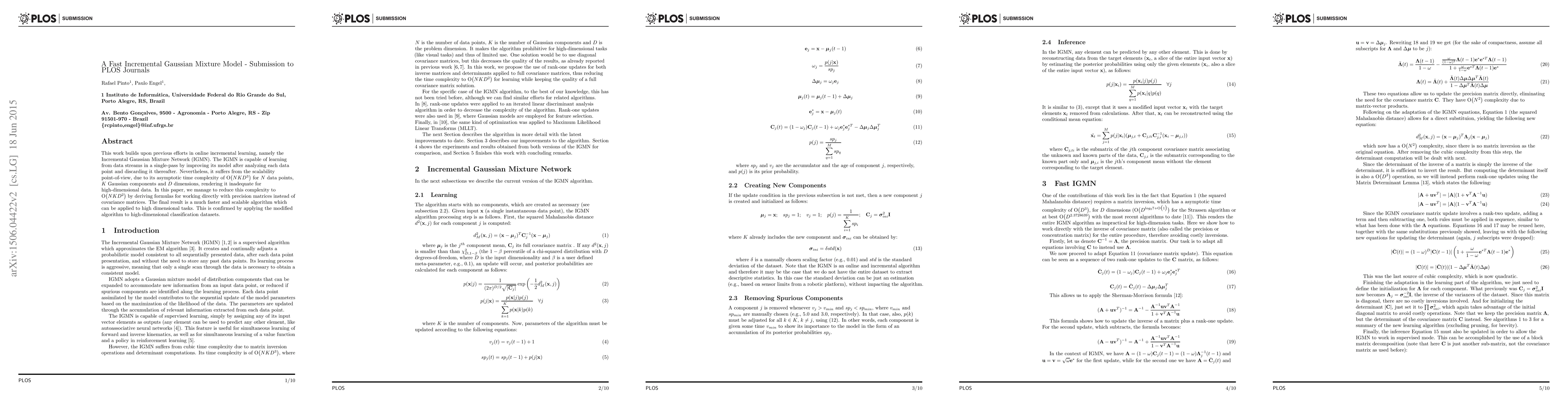 This paper presents a fast incremental Gaussian Mixture Model that reduces time complexity from $\operatorname{O}\bigl(NKD^3\bigr)$ to $\operatorname{O}\bigl(NKD^2\bigr)$ by using precision matrices, making it scalable for high-dimensional data. The effectiveness of the new model is demonstrated through high-dimensional classification tasks.