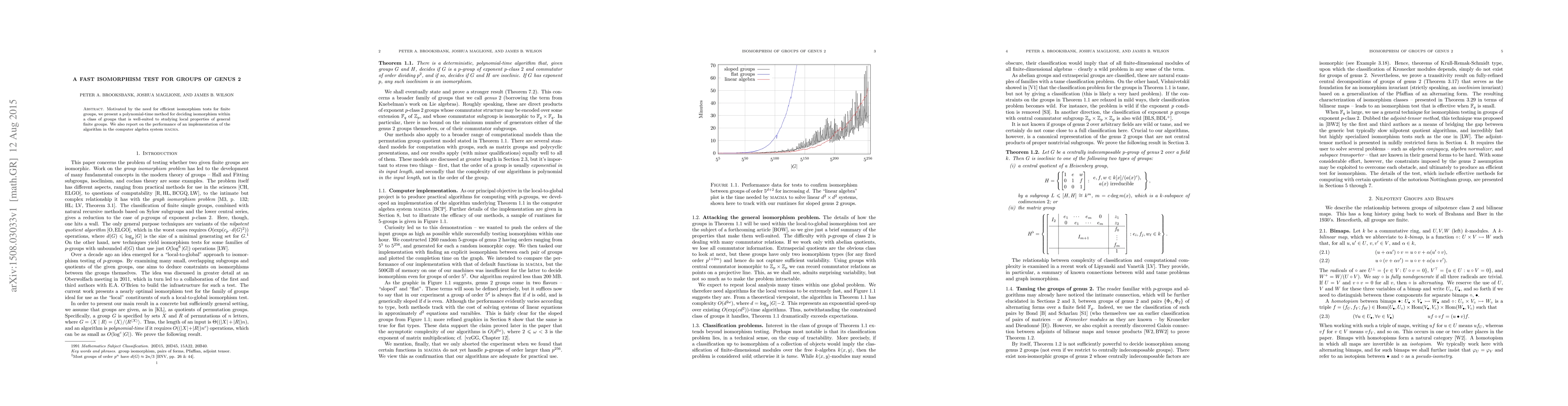 Motivated by the need for efficient isomorphism tests for finite groups, we present a polynomial-time method for deciding isomorphism within a class of groups that is well-suited to studying local properties of general finite groups. We also report on the performance of an implementation of the algorithm in the computer algebra system {\sc magma}.