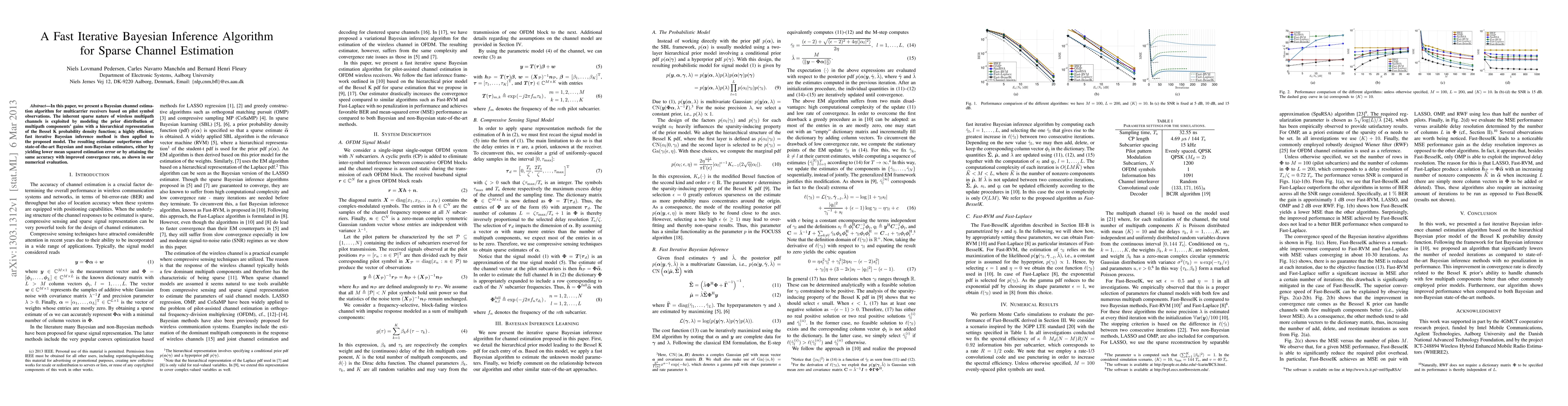 This paper introduces a fast iterative Bayesian inference algorithm for sparse channel estimation in multicarrier receivers, leveraging a hierarchical Bessel K probability density function to model the channel's multipath components. The proposed method outperforms existing estimators in terms of accuracy and convergence rate.