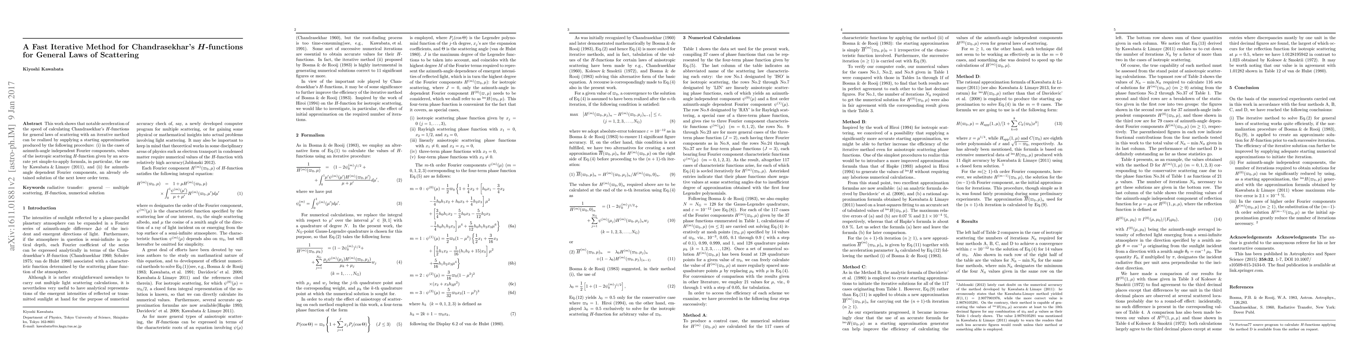 Researchers developed an iterative method to quickly calculate Chandrasekhar's H-functions for general laws of scattering, using pre-calculated formulas or existing solutions as starting points.