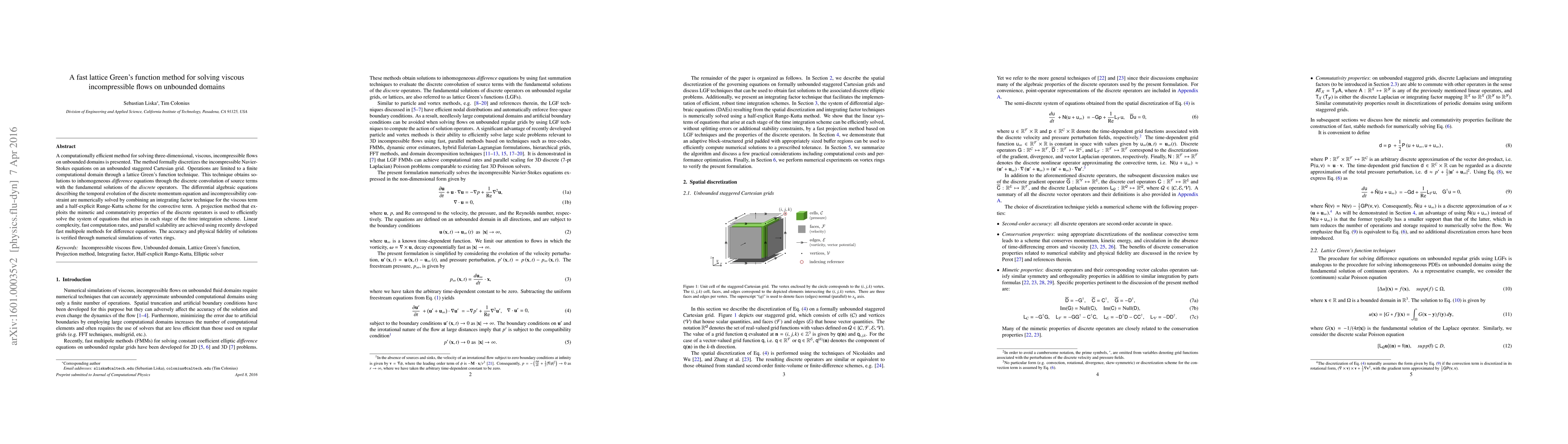 This paper introduces a fast lattice Green's function method for solving viscous incompressible flows on unbounded domains, achieving linear complexity and parallel scalability using fast multipole methods, and demonstrates accuracy through vortex ring simulations. The method discretizes the Navier-Stokes equations on a staggered grid and employs an integrating factor and Runge-Kutta scheme for time integration.