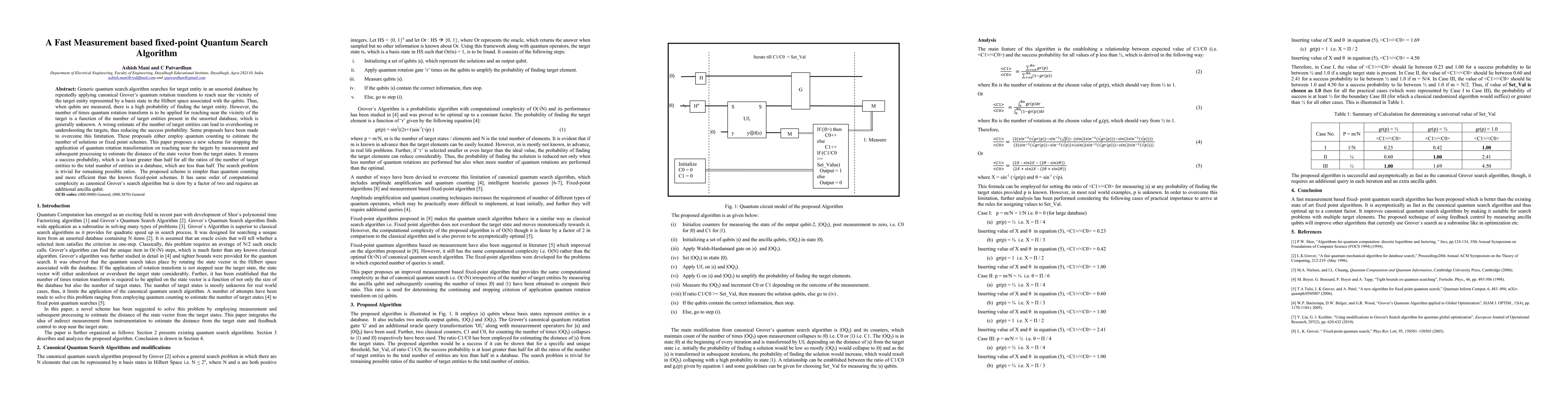 This paper proposes a fast fixed-point quantum search algorithm that improves upon traditional Grover's search by stopping the quantum rotation transform based on measurements and processing to estimate state proximity to target states, ensuring a success probability greater than half for certain database ratios. It is simpler than quantum counting and more efficient than existing fixed-point schemes.