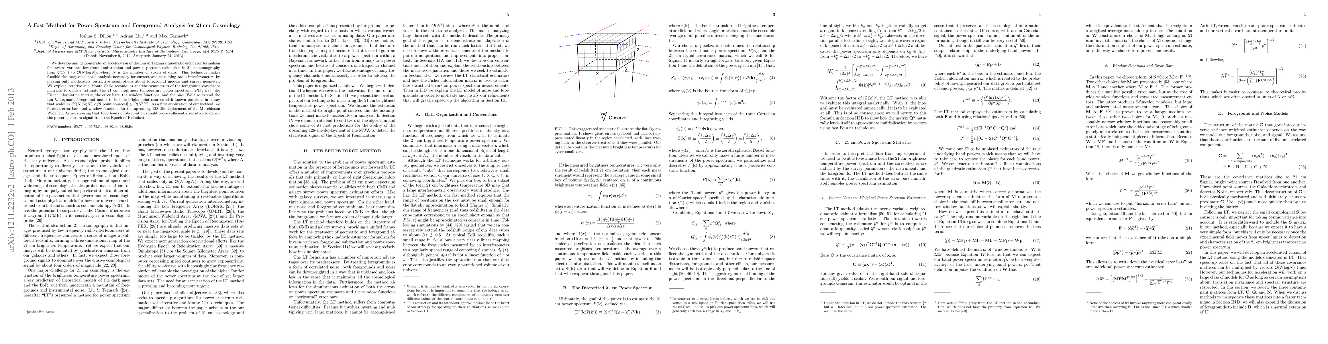 This paper presents a fast method to accelerate power spectrum and foreground analysis for 21 cm cosmology, reducing computational complexity from O(N^3) to O(N log N). The technique enables megavoxel scale analysis for current and future radio interferometers and forecasts sufficient sensitivity for the Murchison Widefield Array to detect the Epoch of Reionization signal.