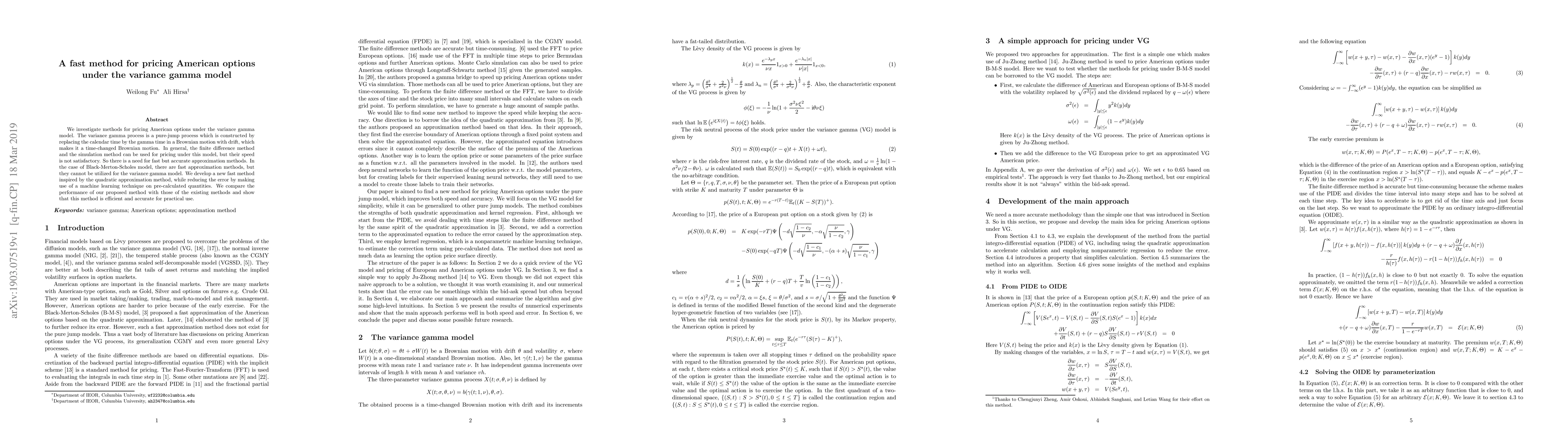 This paper develops a fast and accurate method for pricing American options under the variance gamma model, utilizing a novel approach inspired by the quadratic approximation method and enhanced by machine learning techniques to reduce error, outperforming existing methods in efficiency and accuracy.