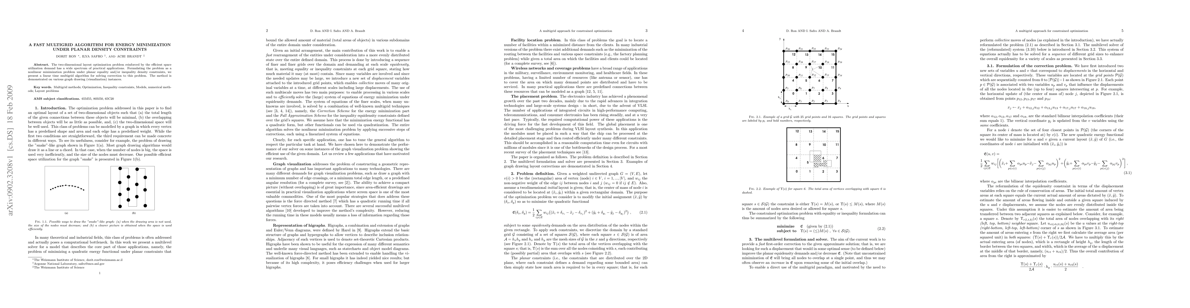 This research introduces a linear time multigrid algorithm for optimizing two-dimensional layouts with density constraints, applicable to graph drawing and visualization problems.