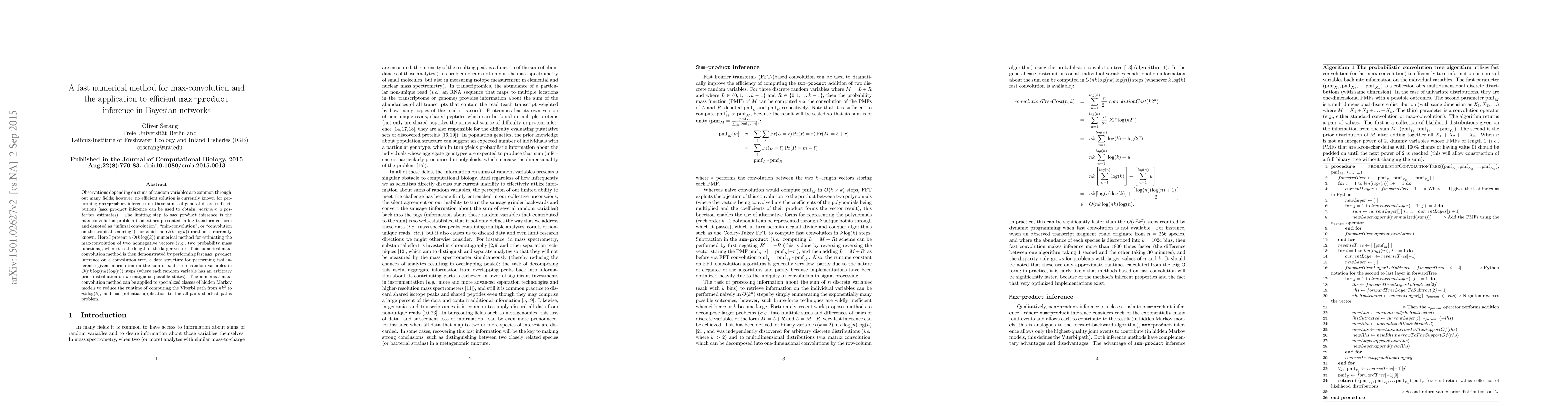 This paper introduces a O(k log(k)) numerical method for max-convolution, addressing the bottleneck in max-product inference for sums of discrete distributions. The method enables efficient max-product inference in Bayesian networks and reduces the runtime for computing the Viterbi path in hidden Markov models.