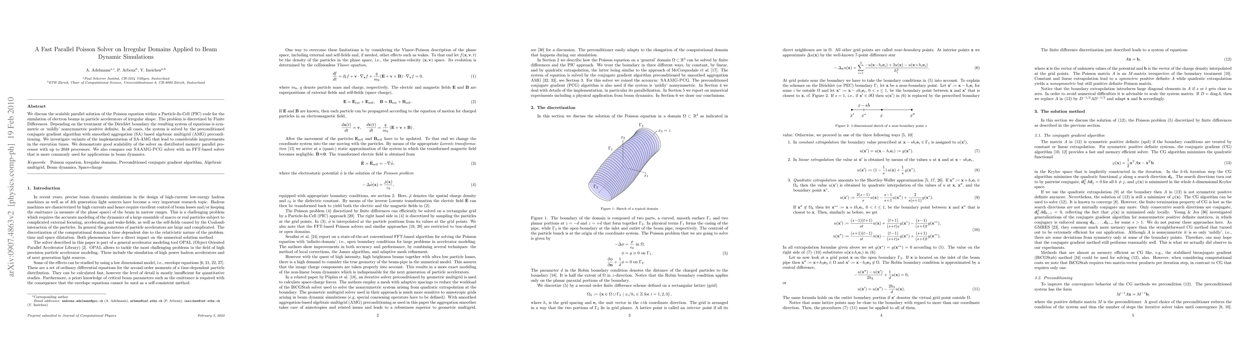 This paper presents a scalable parallel Poisson solver for irregular particle accelerator domains, employing a preconditioned conjugate gradient method with smoothed aggregation-based algebraic multigrid preconditioning. The solver demonstrates significant performance improvements and scalability on up to 2048 processors, outperforming a traditional FFT-based solver.