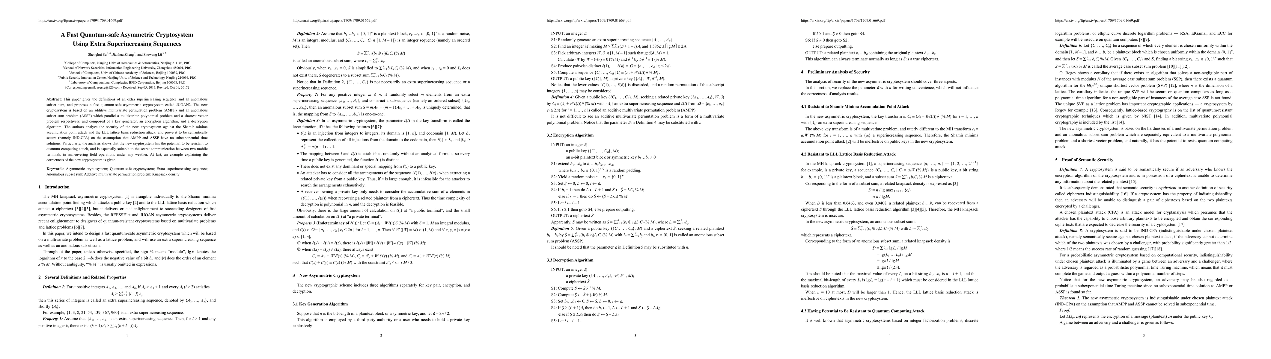 This paper gives the definitions of an extra superincreasing sequence and an anomalous subset sum, and proposes a fast quantum-safe asymmetric cryptosystem called JUOAN2. The new cryptosystem is based on an additive multivariate permutation problem (AMPP) and an anomalous subset sum problem (ASSP) which parallel a multivariate polynomial problem and a shortest vector problem respectively, and composed of a key generator, an encryption algorithm, and a decryption algorithm. The authors analyze the security of the new cryptosystem against the Shamir minima accumulation point attack and the LLL lattice basis reduction attack, and prove it to be semantically secure (namely IND-CPA) on the assumption that AMPP and ASSP have no subexponential time solutions. Particularly, the analysis shows that the new cryptosystem has the potential to be resistant to quantum computing attack, and is especially suitable to the secret communication between two mobile terminals in maneuvering field operations under any weather. At last, an example explaining the correctness of the new cryptosystem is given.