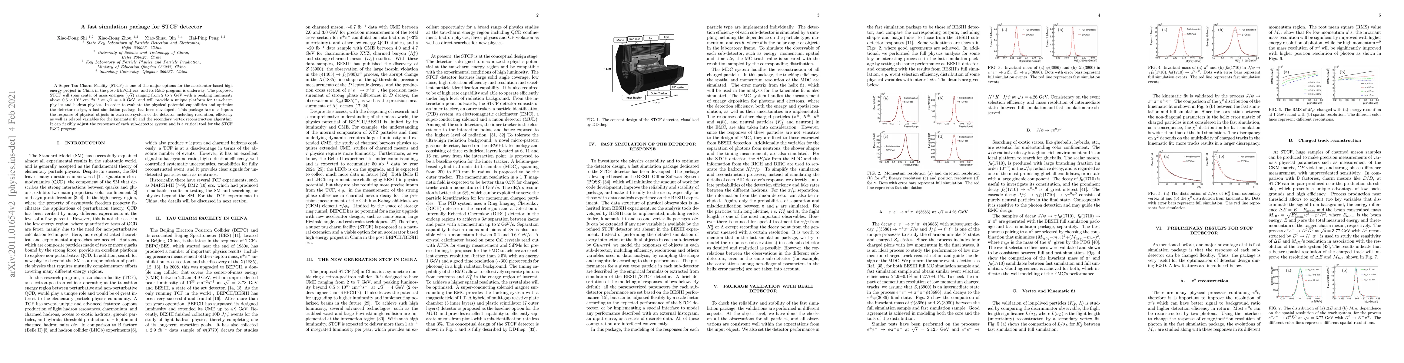 This paper presents a fast simulation package developed to evaluate the capabilities and optimize the design of the Super Tau Charm Facility (STCF) detector, which operates at energies from 2 to 7 GeV. The package adjusts the responses of detector sub-systems and is vital for STCF's research and development program.